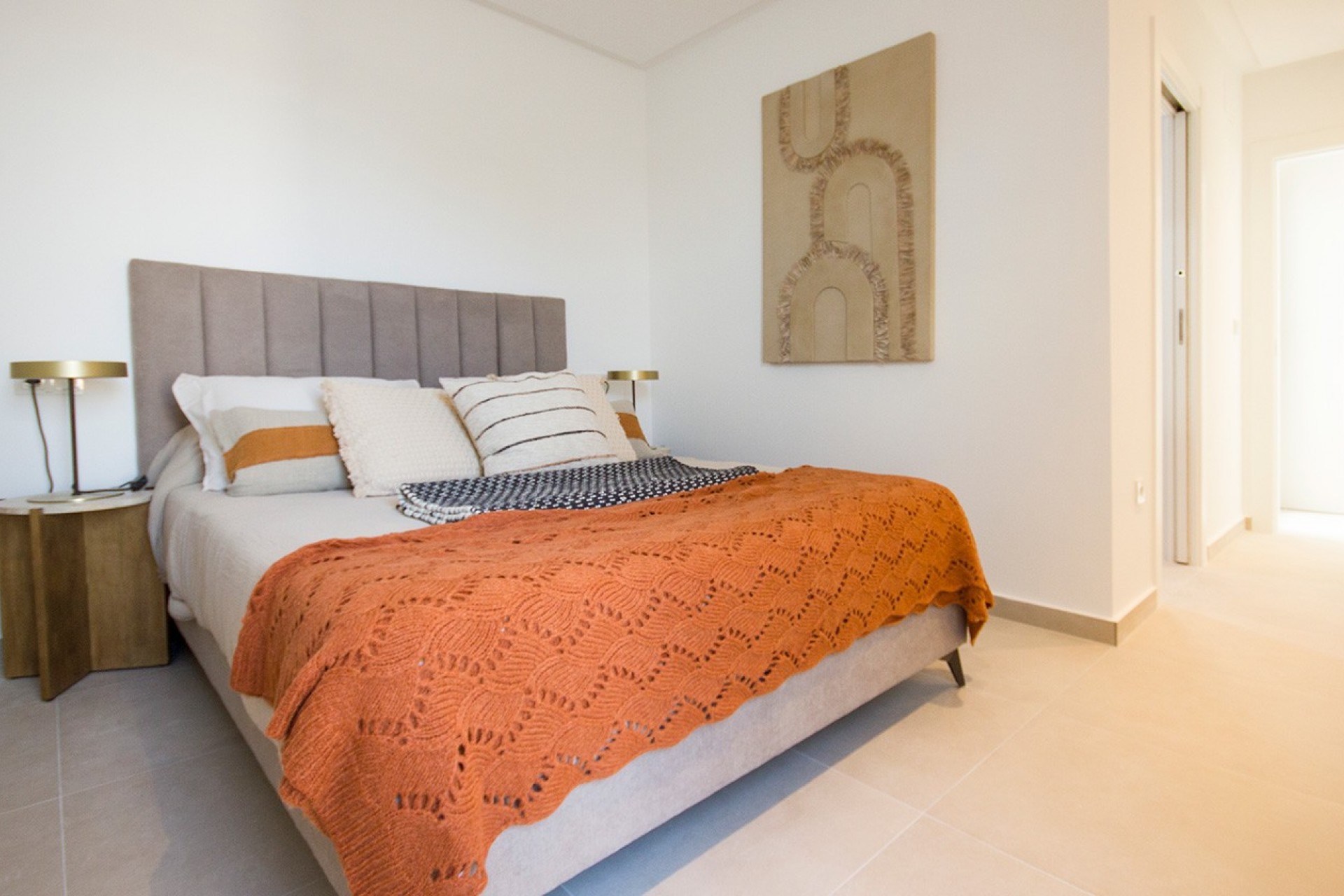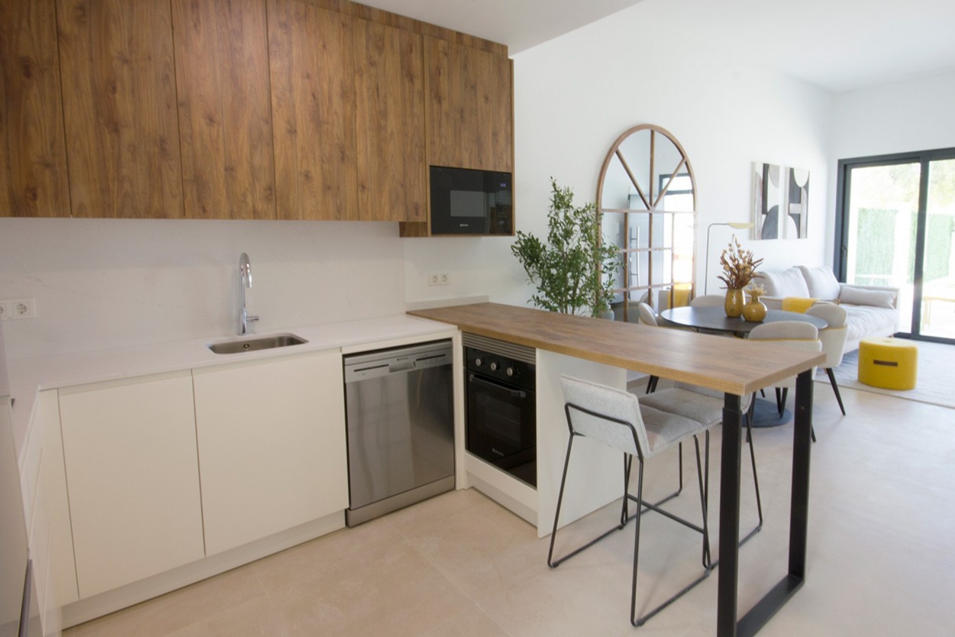 Con opciones de 2 y 3 dormitorios, cada vivienda está diseñada con acabados de alta calidad. Las plantas bajas cuentan con amplias terrazas y acceso directo al jardín, mientras que las plantas superiores disfrutan de un solárium privado con pérgola, enchufes y toma de agua, ideal para relajarse al aire libre.