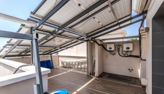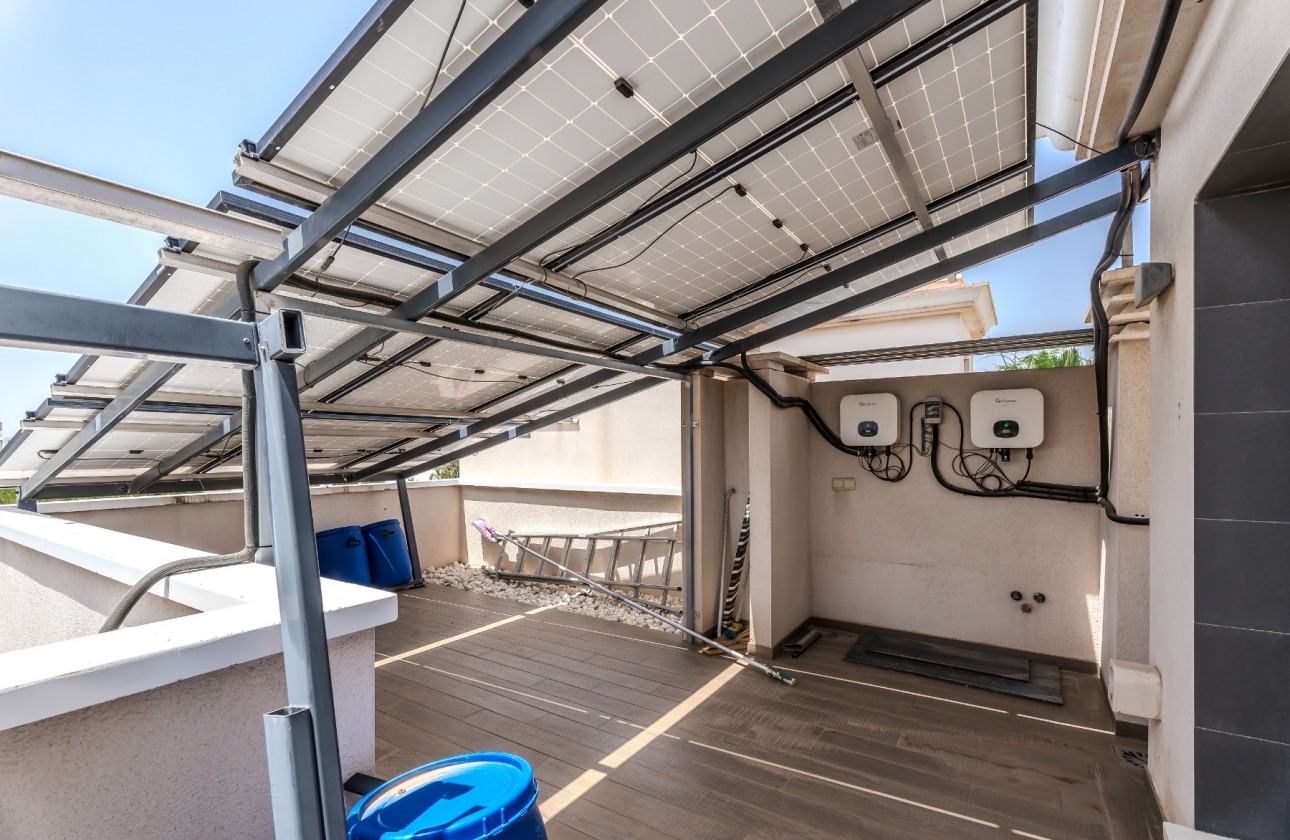 Paneles solares en la terraza del tejado que generan aproximadamente 40 kW/día.