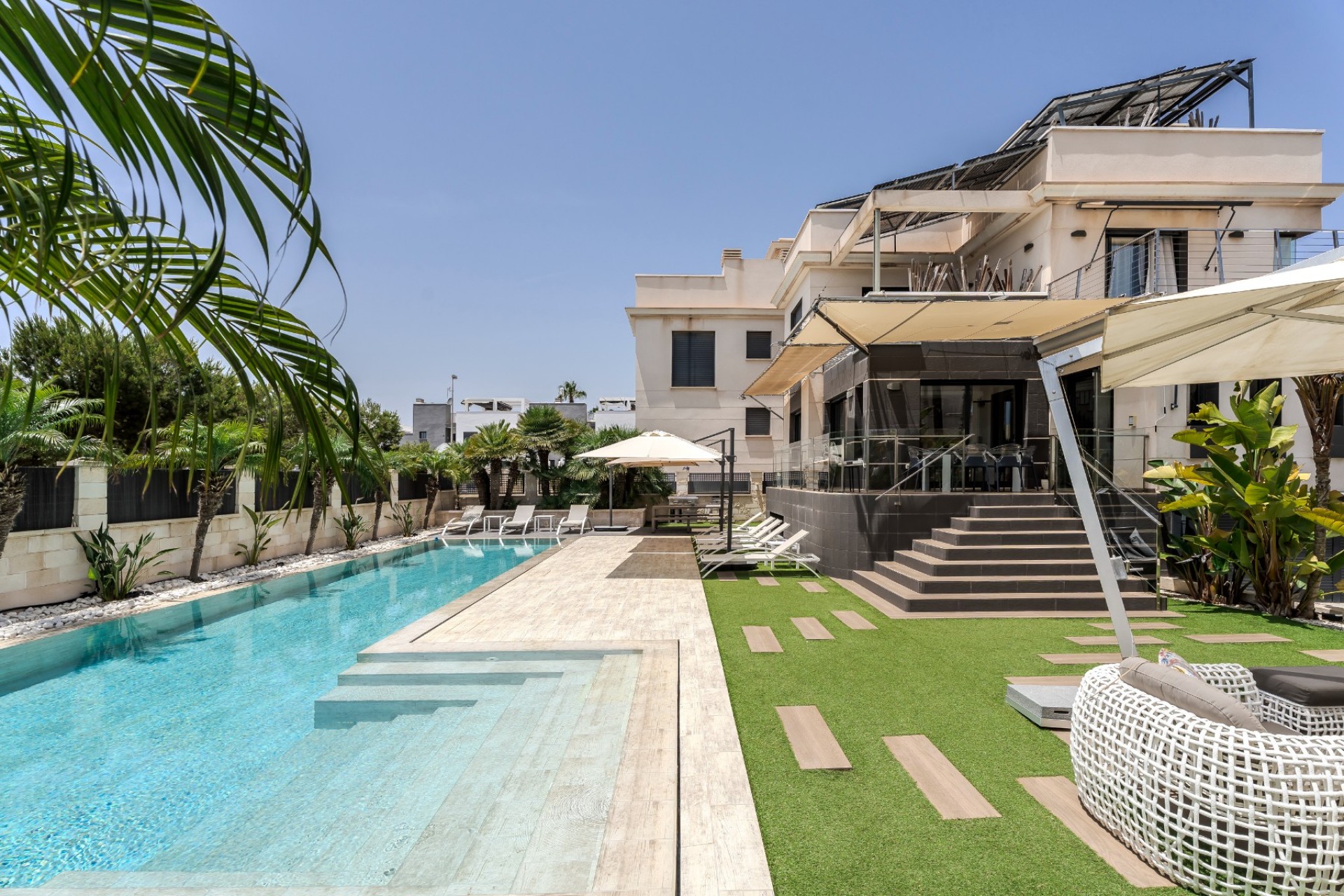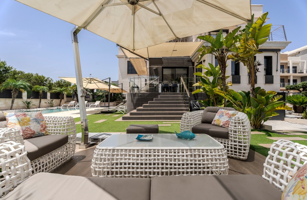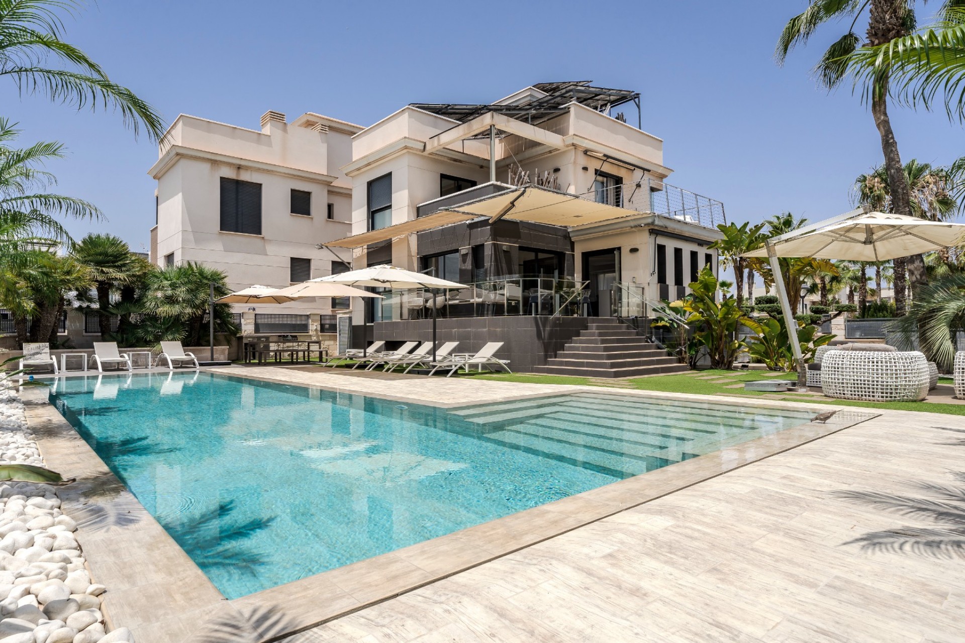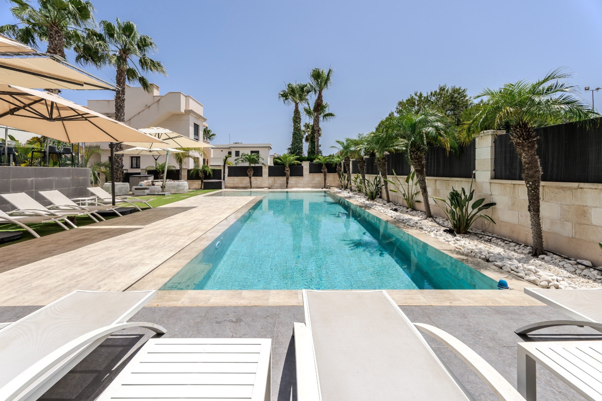 Viva la experiencia del refinado estilo de vida mediterráneo en esta bellamente diseñada villa de lujo, idealmente ubicada en La Zenia, a solo 3 minutos a pie del famoso La Zenia Boulevard. Con amplios espacios interiores y exteriores, esta casa es un verdadero oasis de comodidad, privacidad y estilo elegante.