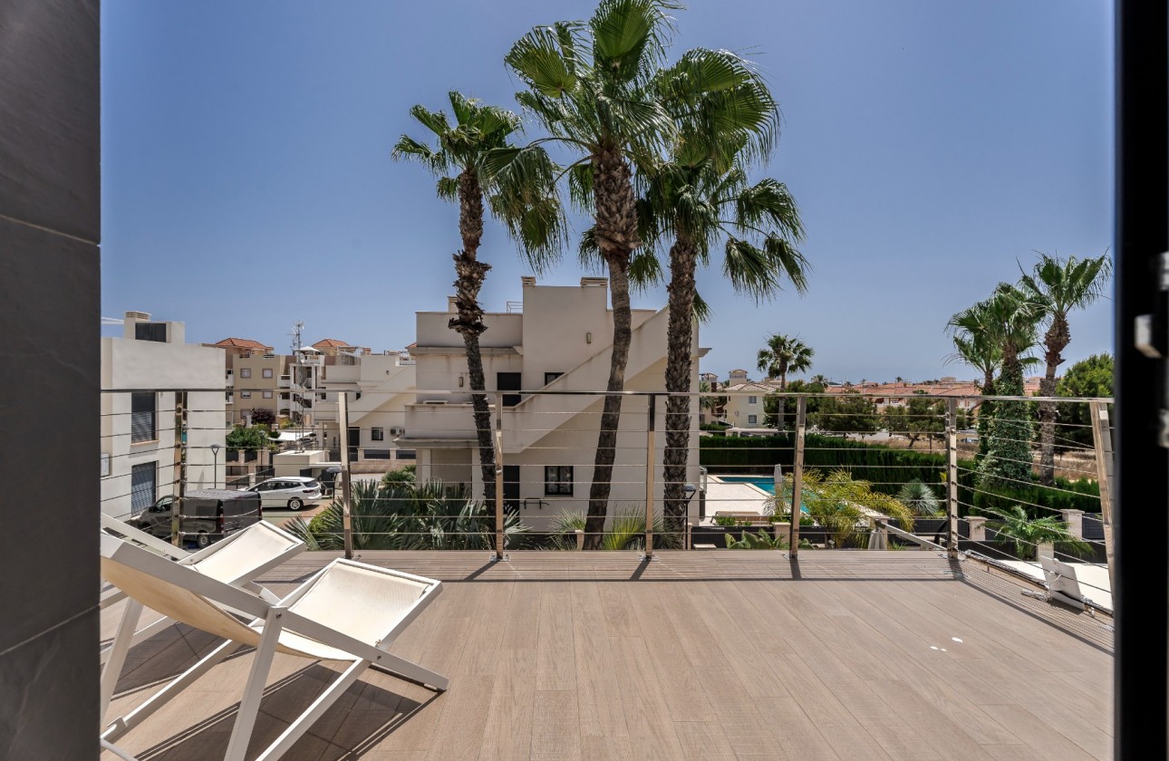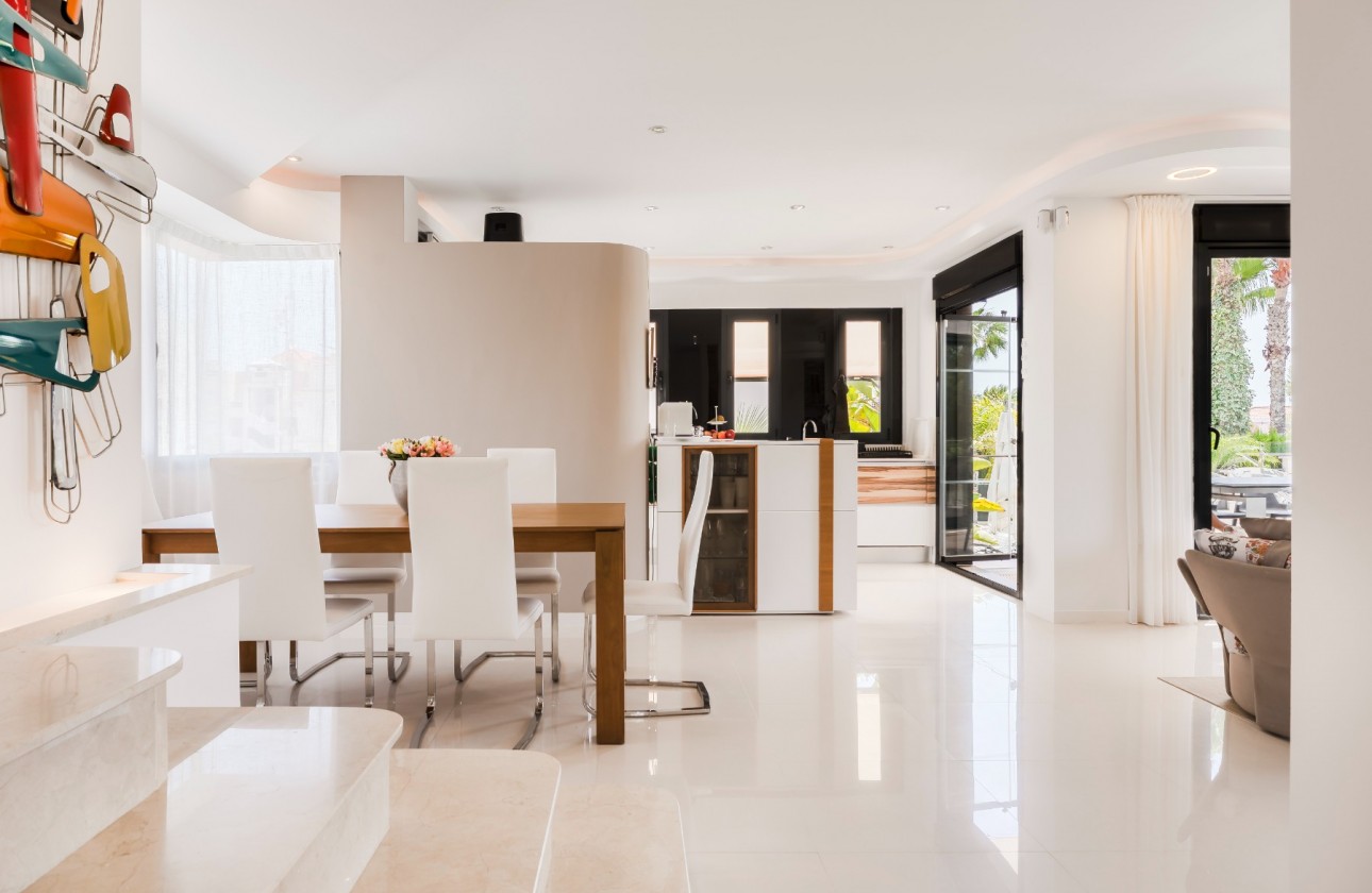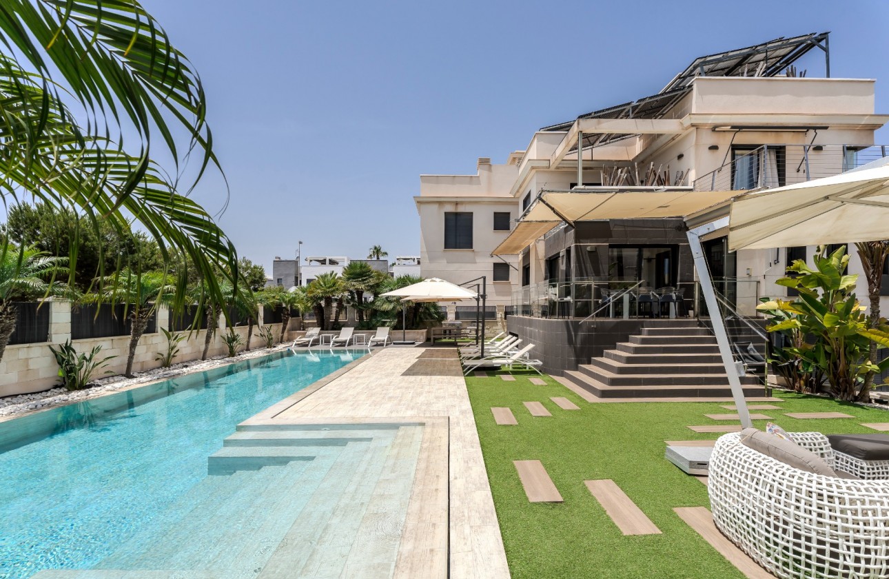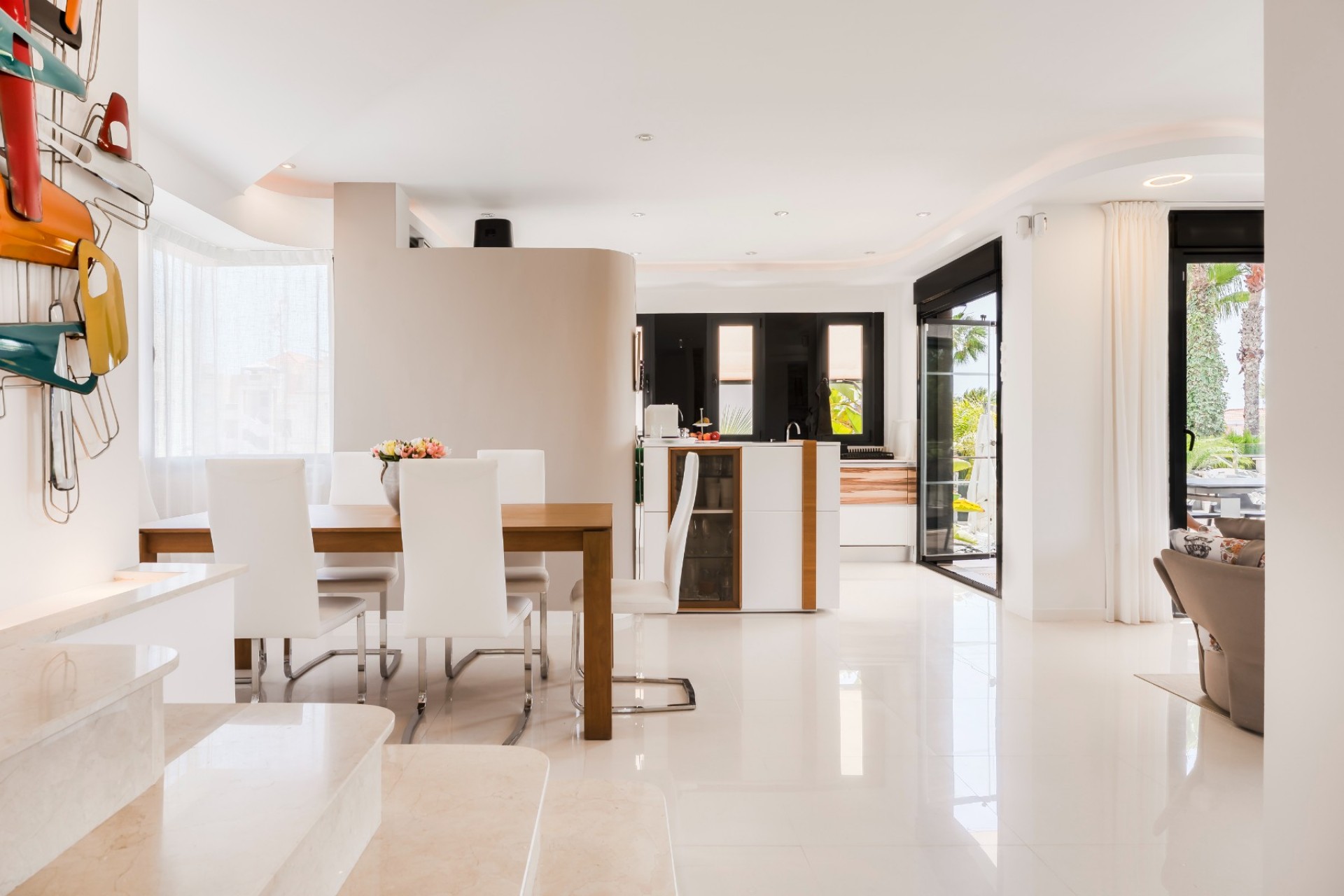 Viva la experiencia del refinado estilo de vida mediterráneo en esta bellamente diseñada villa de lujo, idealmente ubicada en La Zenia, a solo 3 minutos a pie del famoso La Zenia Boulevard. Con amplios espacios interiores y exteriores, esta casa es un verdadero oasis de comodidad, privacidad y estilo elegante.