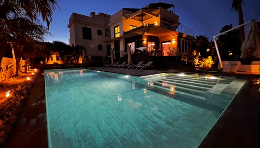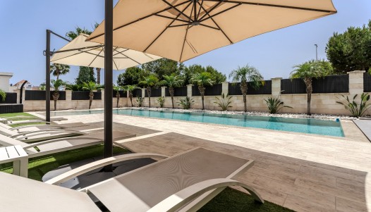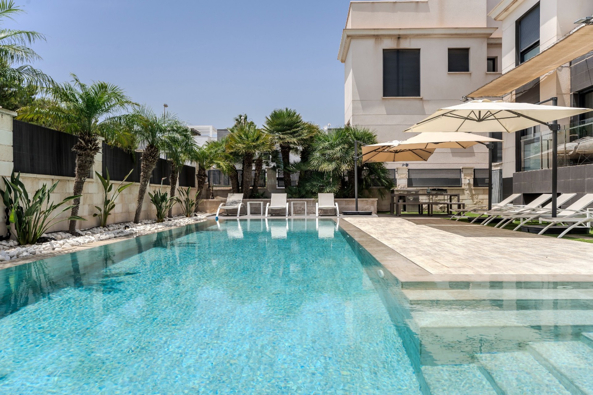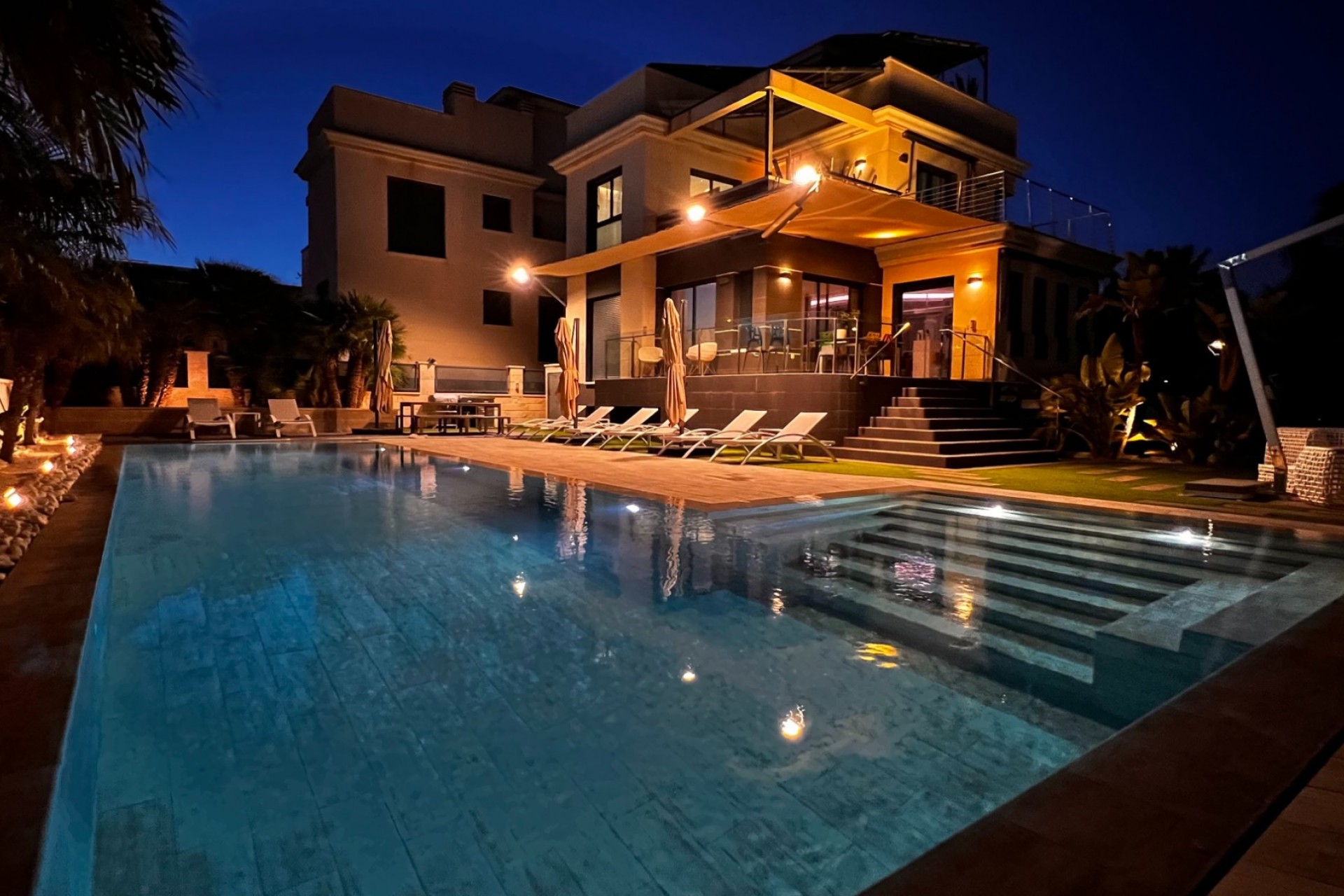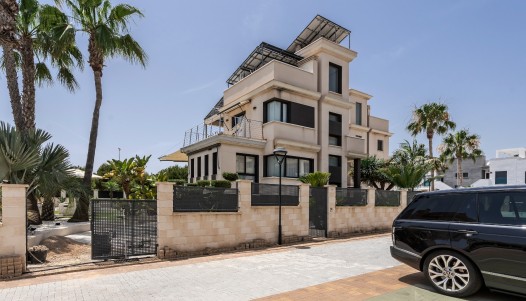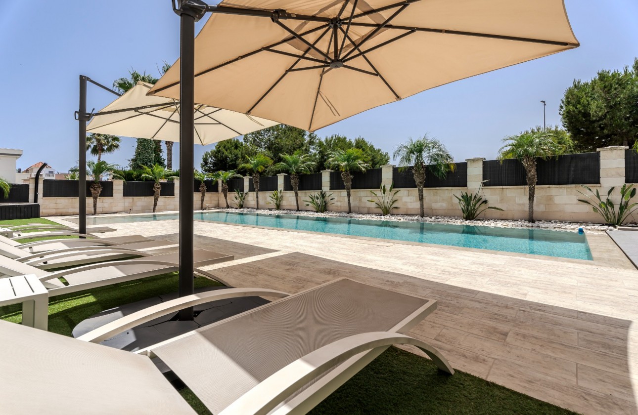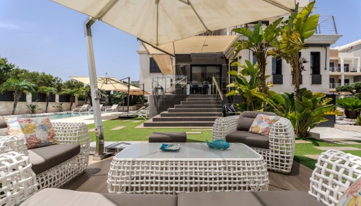 Viva la experiencia del refinado estilo de vida mediterráneo en esta bellamente diseñada villa de lujo, idealmente ubicada en La Zenia, a solo 3 minutos a pie del famoso La Zenia Boulevard. Con amplios espacios interiores y exteriores, esta casa es un verdadero oasis de comodidad, privacidad y estilo elegante.