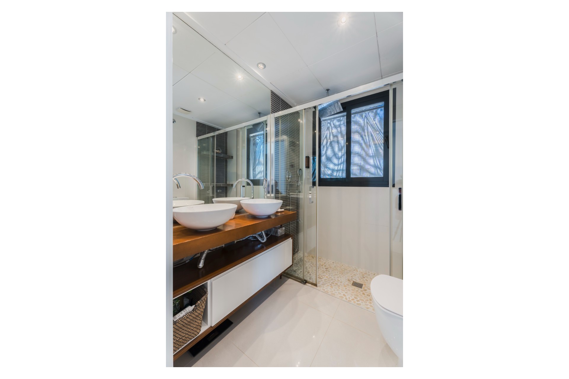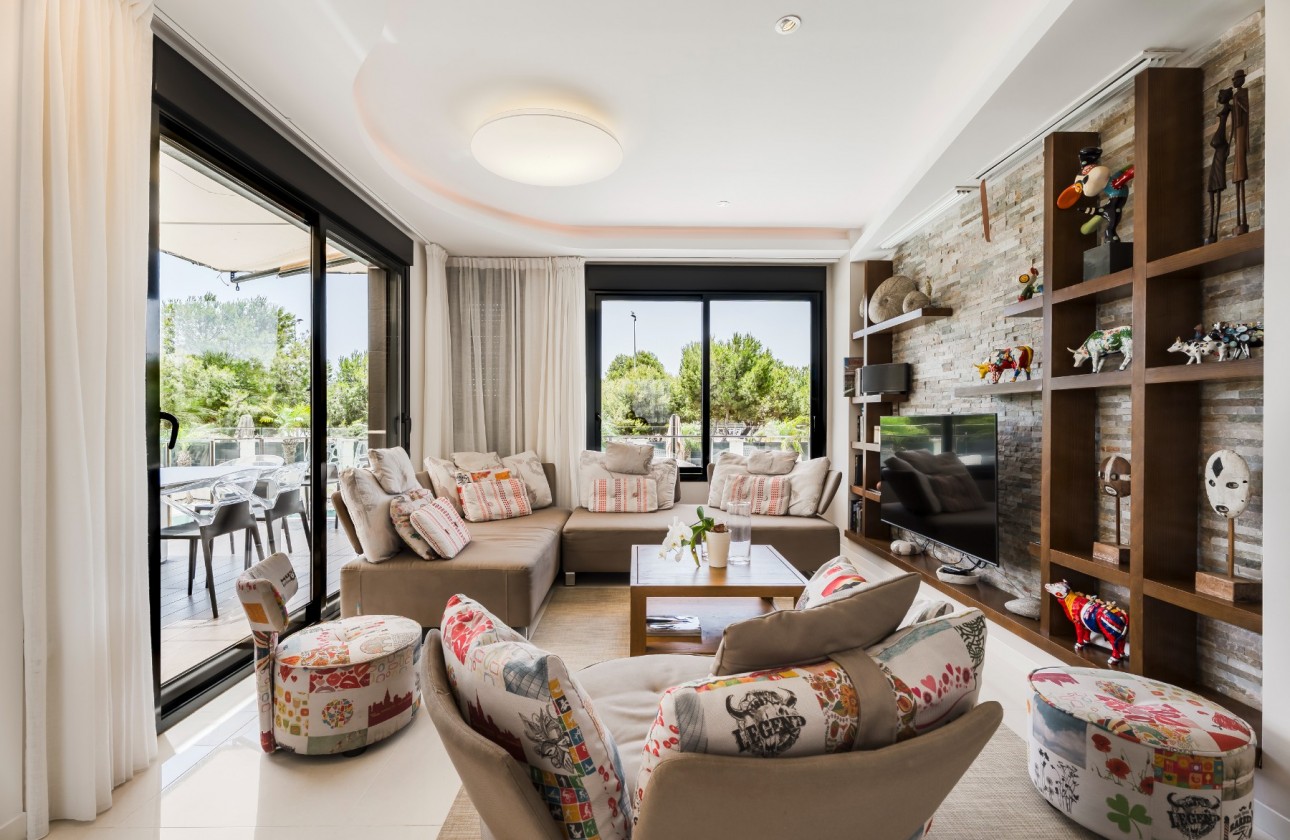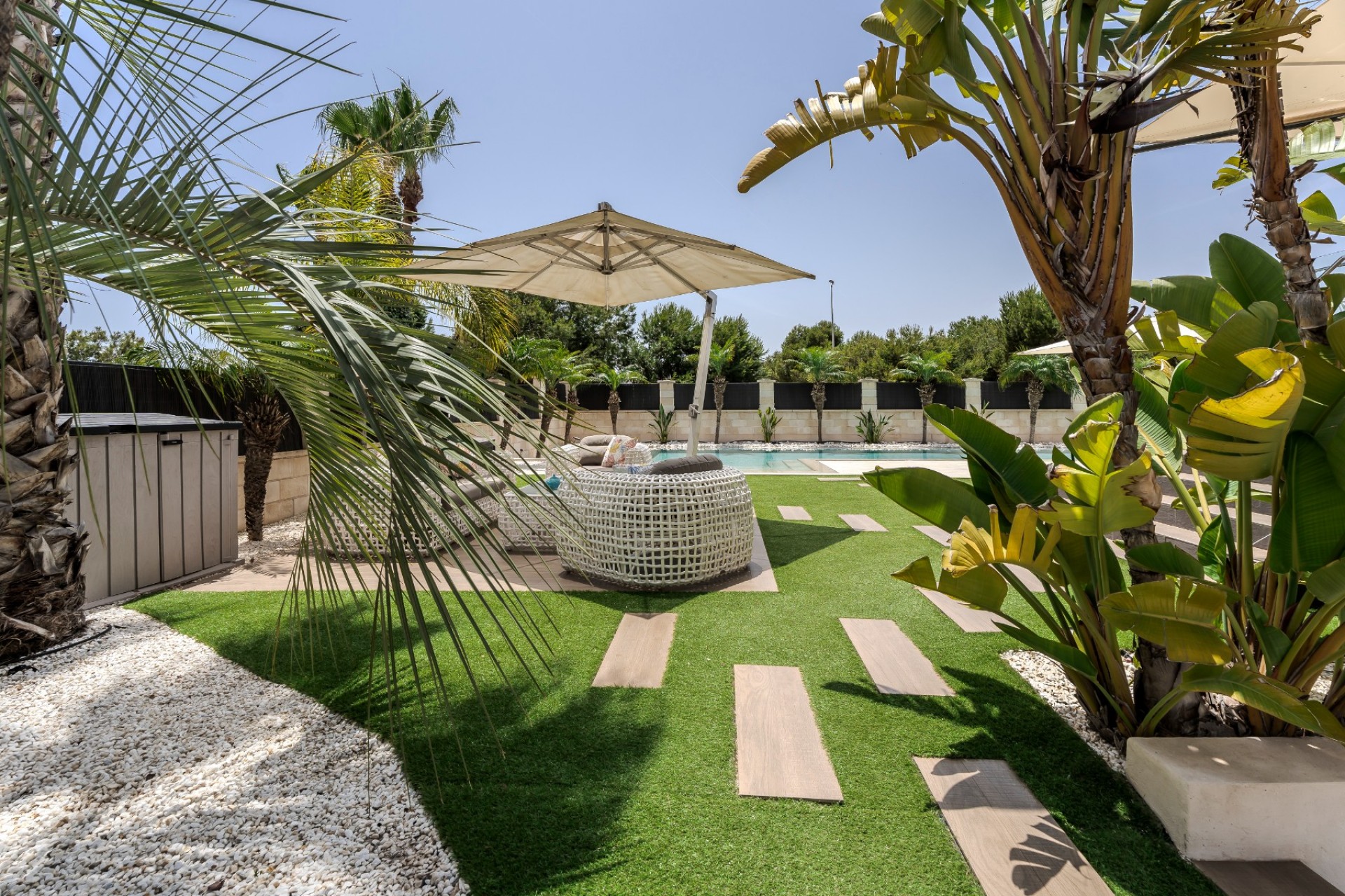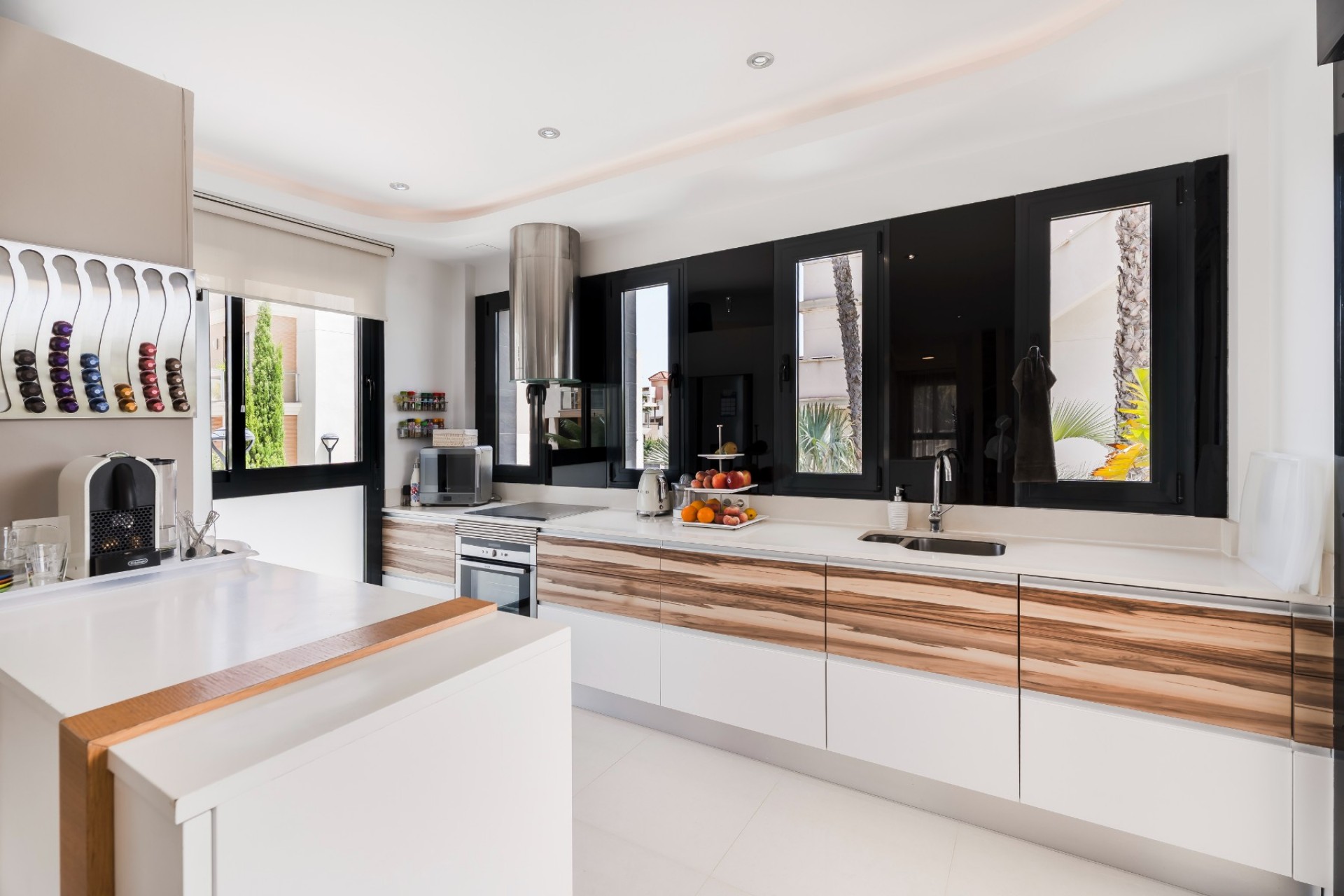Grandes ventanales colocados estratégicamente a lo largo de la villa permiten abundante luz natural, creando espacios luminosos y acogedores. A pesar de su ubicación tan central, la villa ofrece un notable nivel de privacidad, gracias a su jardín exuberante y diseño inteligente.