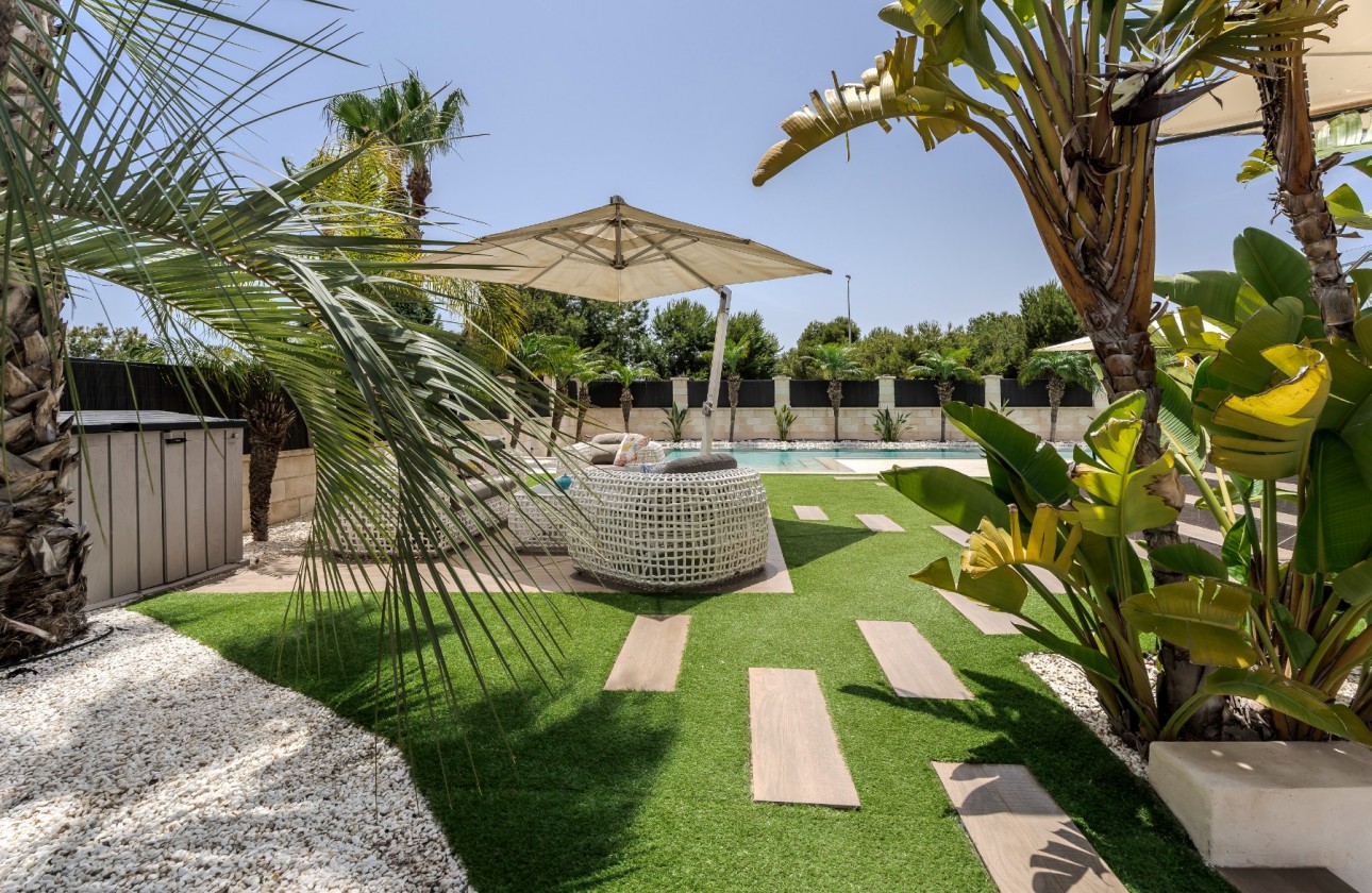 Jardín privado con una diversa selección de árboles plantados a medida provenientes de todo el mundo. La variedad de especies no solo aporta atractivo estético, sino también un alto nivel de privacidad y vegetación exuberante a toda la propiedad.