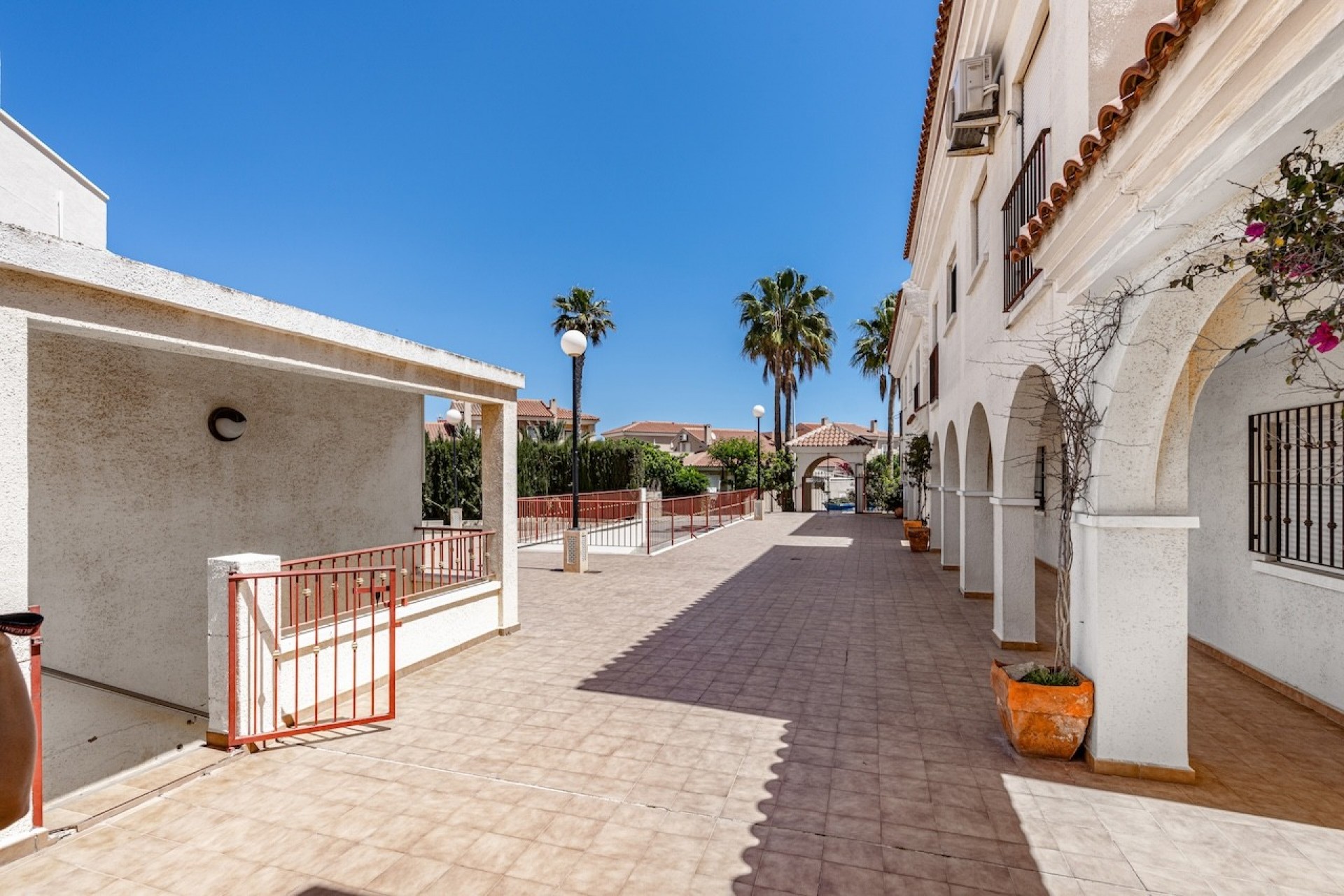 Avenida de Escandinavia – rue animée avec commerces, restaurants, cafés, pharmacies, école, bibliothèque, aires de jeux et centre médical