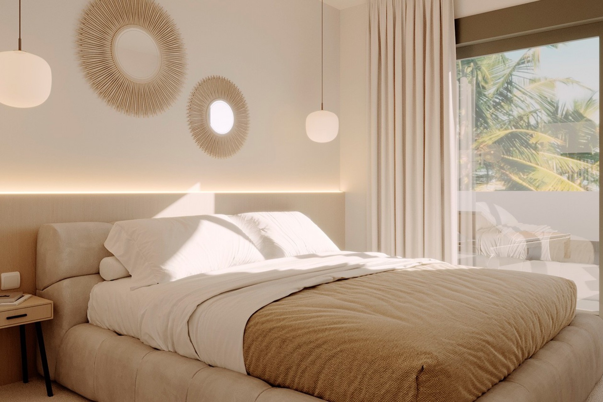 Ce complexe élégant se compose de deux blocs d'appartements et de penthouses, chacun avec un total de 32 logements répartis sur 4 étages, avec 8 logements par étage. Ces propriétés se distinguent par leur design moderne et leur parfaite intégration dans l’environnement. Toutes les habitations disposent de grandes terrasses – idéales pour profiter du magnifique climat méditerranéen – ainsi que d’un garage privé pour plus de confort.