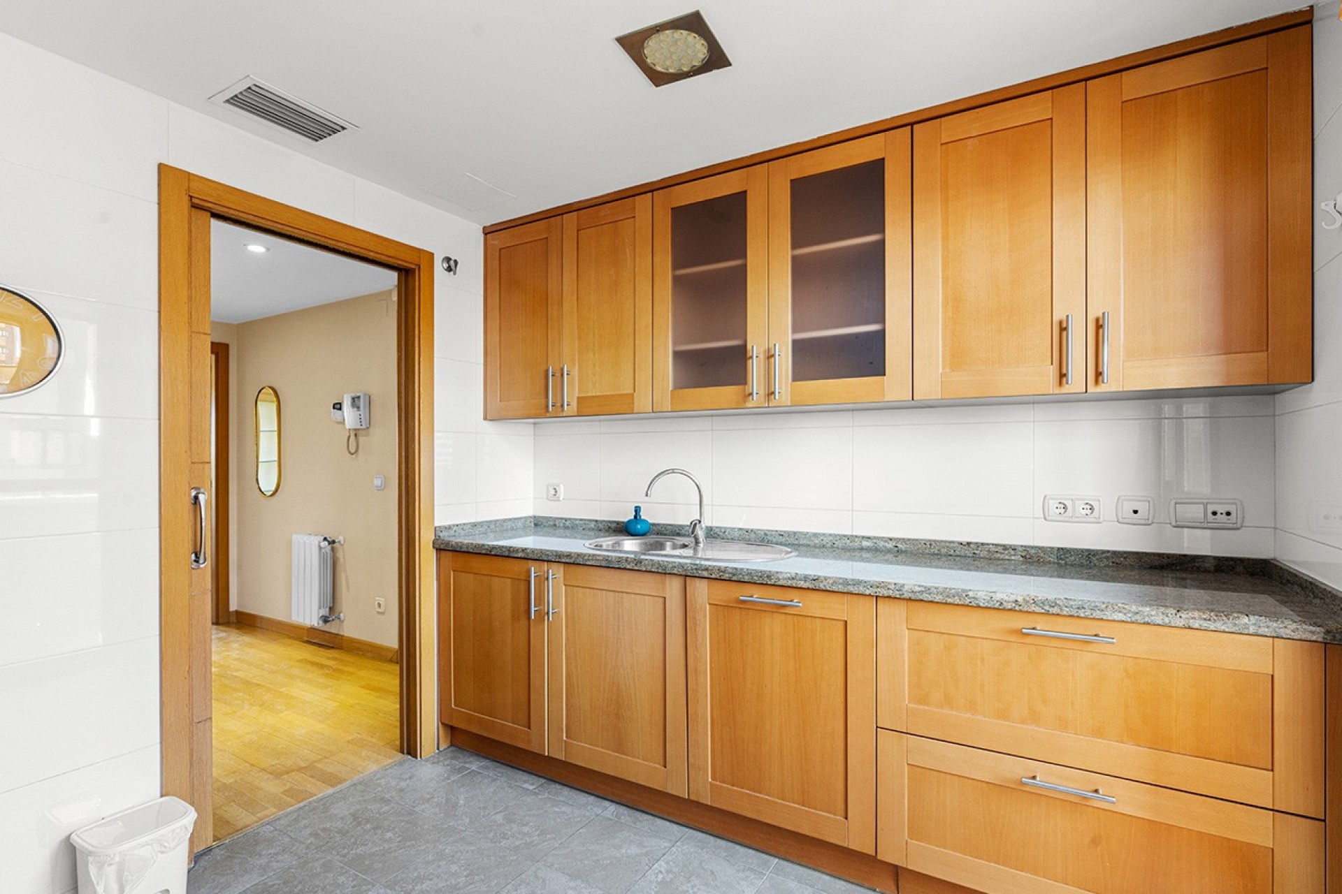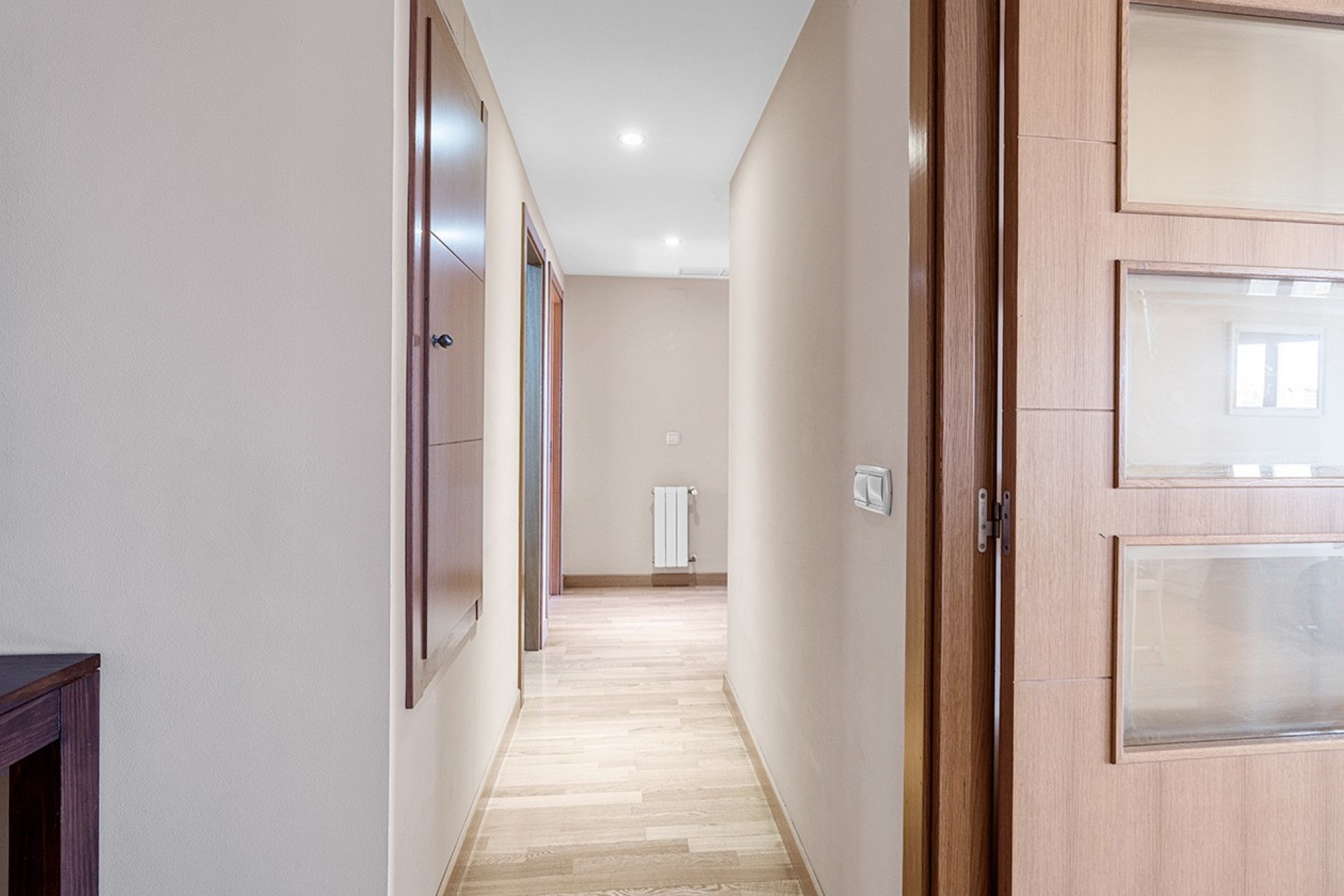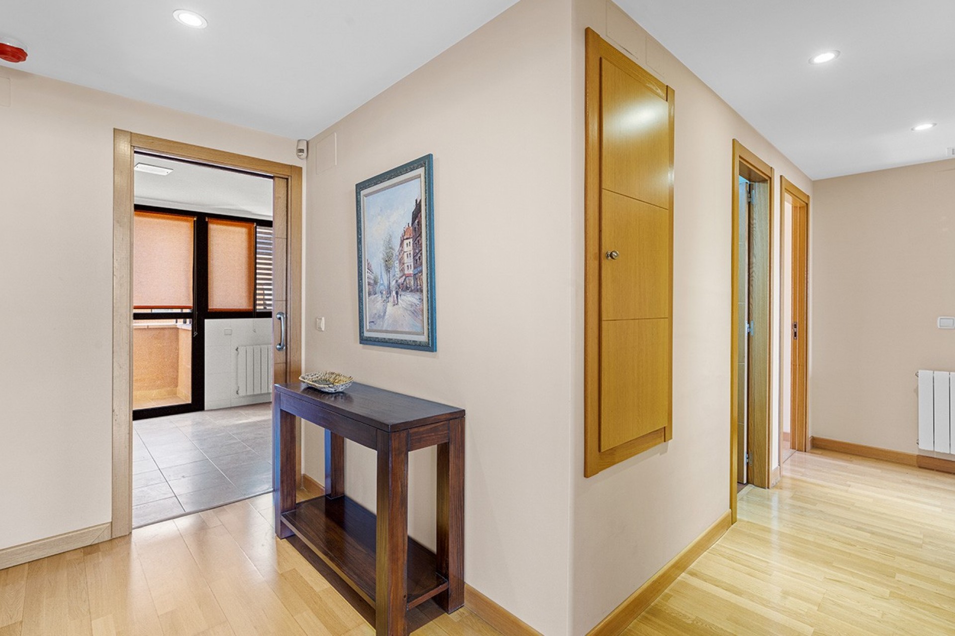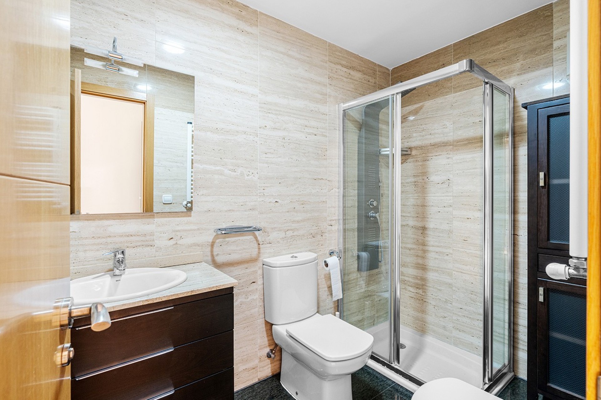 L’appartement comprend trois chambres, deux salles de bains complètes et une terrasse de 15 m², idéale pour se détendre en plein air. Il dispose également d’une grande place de parking et d’un débarras, offrant un espace supplémentaire très pratique. Parmi ses caractéristiques figurent la climatisation et le chauffage au gaz naturel.