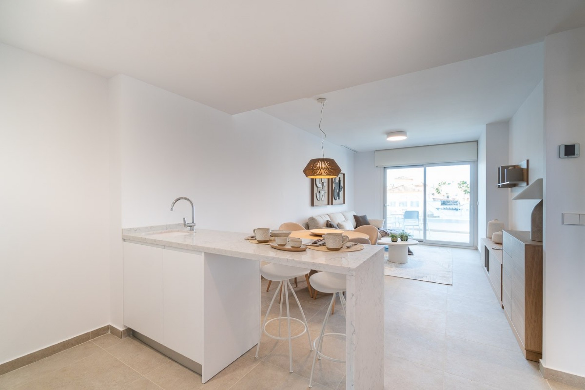 Den tredje fasen av boligkomplekset tilbyr 30 elegante leiligheter med 2, 3 og 4 soverom, alle med romslige innebygde garderober og 2 til 3 bad. Hver bolig har en romslig, moderne stue, et moderne, åpent kjøkken med møbler av høy kvalitet og benkeplater i kvarts, som Compac eller Silestone. Store skyvevinduer gir tilgang til terrassen foran, ideell for å nyte det middelhavske klimaet.