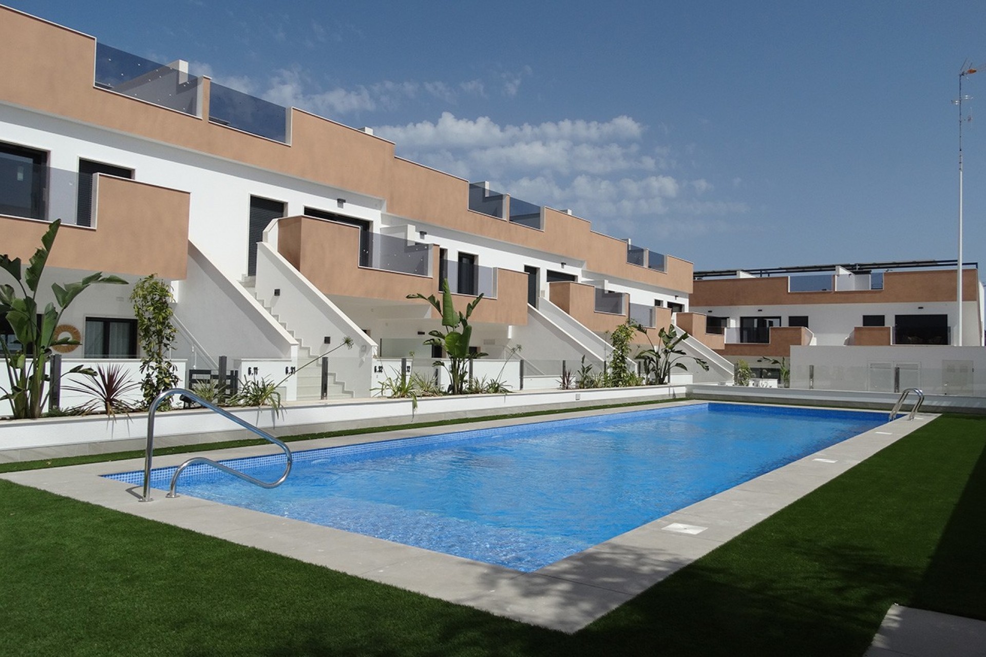 Prosjektet tilbyr boliger med 2 og 3 soverom, fordelt mellom første etasje og toppetasje. Førsteetasjene har romslige private terrasser, mens toppleilighetene har solarium og bod – perfekte uteområder for å nyte middelhavssolen med full privatliv.