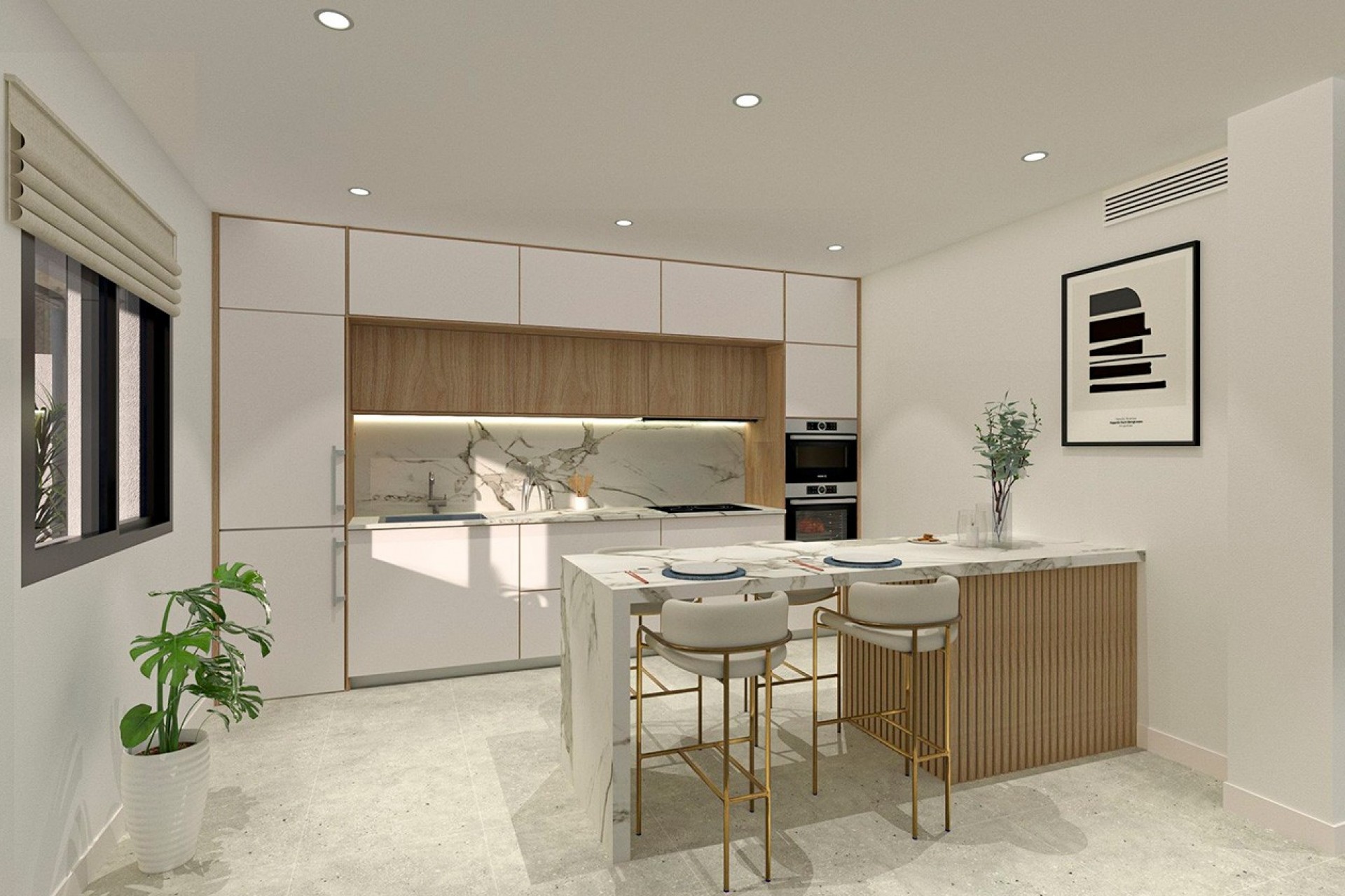 Hver bolig er bygget med materialer av høy kvalitet og moderne tekniske løsninger med fokus på komfort og energieffektivitet, inkludert fullt utstyrt kjøkken med hvitevarer, forhåndsinstallasjon for kanalisert klimaanlegg, elektriske persienner, doble vinduer, aluminiumsdetaljer i mørkegrå finish, LED-belysning inne og ute, sikkerhetsdør og vanntilkoblinger på terrasser og takterrasser.