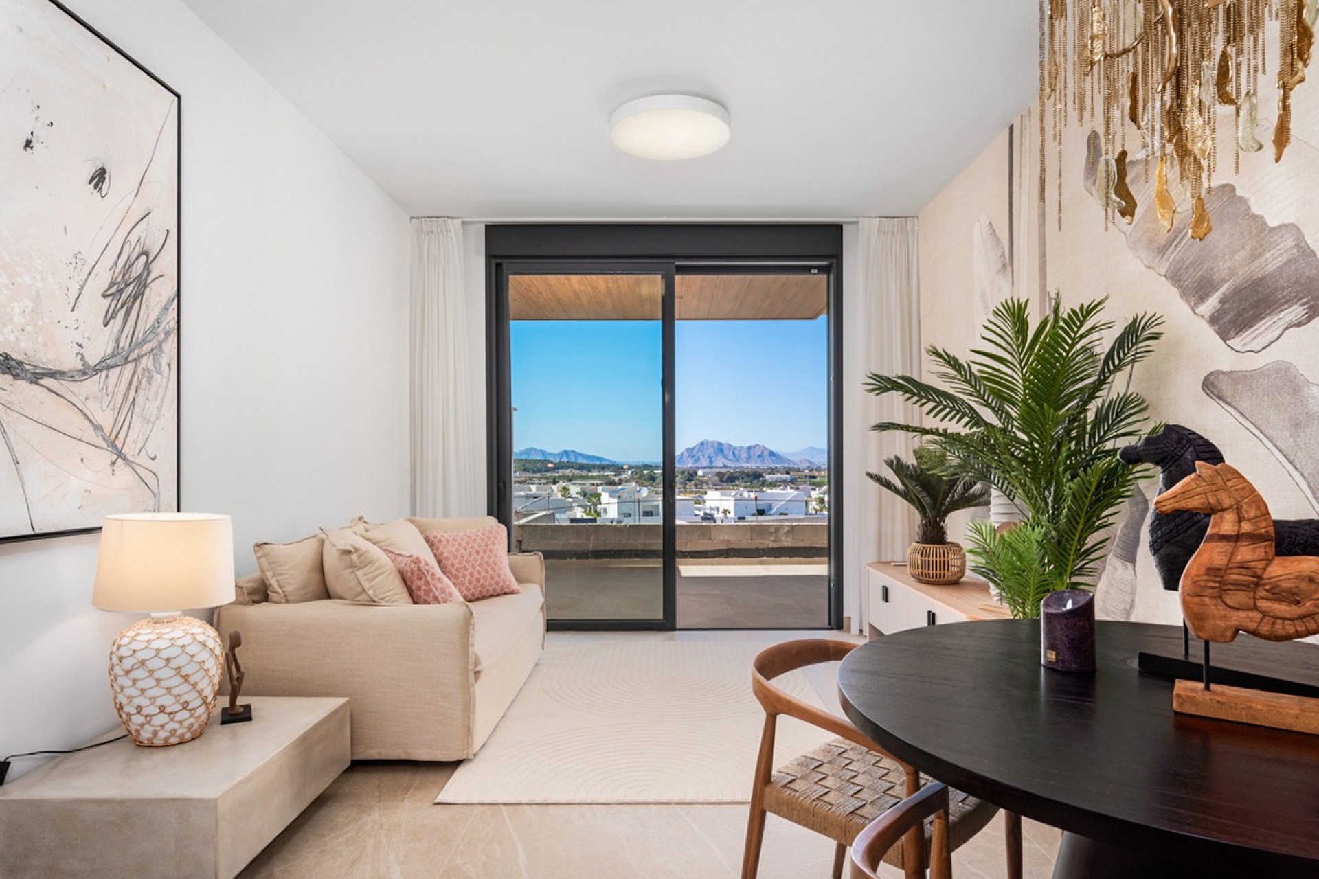 Mieszkania na parterze oferują nieprzeszkadzające widoki, podczas gdy piętra wyższe zaskoczą Cię jeszcze bardziej imponującymi panoramami. Ale to, co naprawdę wyróżnia się, to penthousy, dostępne od 389 000 €. Te luksusowe przestrzenie mają przestronny balkon/taras skierowany na południowy zachód, a najlepsze czeka na dachu: prywatny basen o powierzchni około 100 m², towarzyszy mu luksusowa kuchnia na świeżym powietrzu, prysznic zewnętrzny i WC. 100% prywatności i panoramiczny widok, który zapiera dech w piersiach!