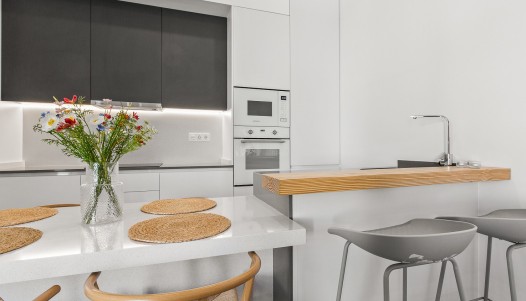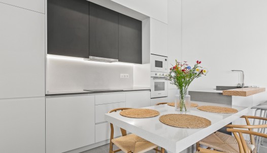 With 3 bedrooms and 2 stylish bathrooms, the villa provides a light-filled and functional interior layout. The open-plan living and dining area seamlessly connects to a sleek, fully fitted kitchen—ideal for family life or entertaining guests. Quality materials and finishes are evident throughout the home, from ceramic flooring to double-glazed windows and energy-efficient systems.