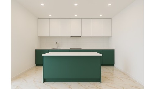 Open-plan kitchen, integrated into a 44 sqm living-dining area – perfect for enjoying time with family and friends.