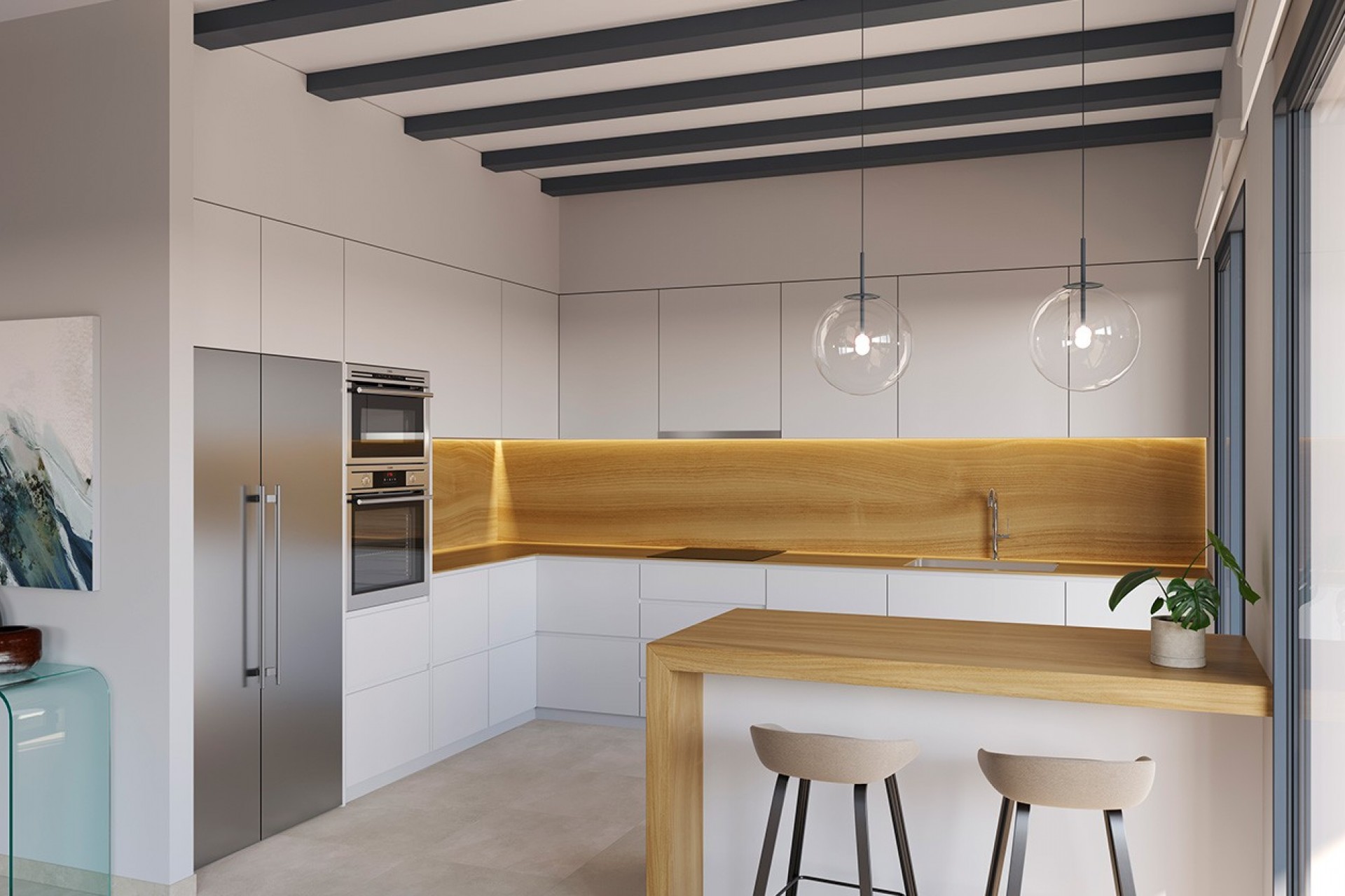 These villas stand out for their high-quality finishes and commitment to sustainability. They feature underfloor heating throughout, powered by an aerothermal system with independent thermostats; PVC exterior carpentry with double glazing and electric shutters; LED interior lighting, including LED strips inside fitted wardrobes; and fully equipped kitchens with appliances. In addition, they offer covered parking with a metal pergola and photovoltaic solar panels, helping to reduce energy consumption and increase comfort.