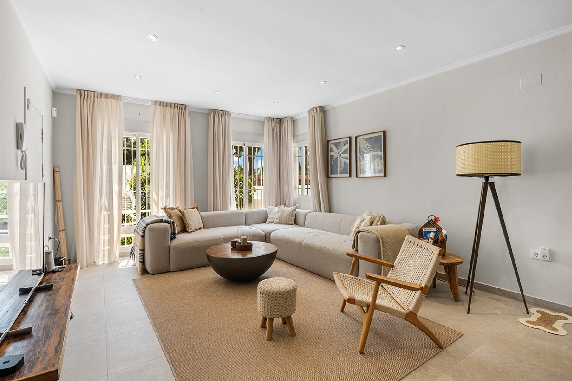 The property, completely renovated and decorated with high-quality furniture, is arranged on a single floor offering spacious, bright and comfortable rooms. It has three bedrooms with wardrobes, two full bathrooms and a guest toilet, as well as an elegant living-dining room with direct access to the outdoors. The modern kitchen is equipped with a refrigerator, oven, ceramic hob and extractor hood, making it a functional and practical space for daily use.