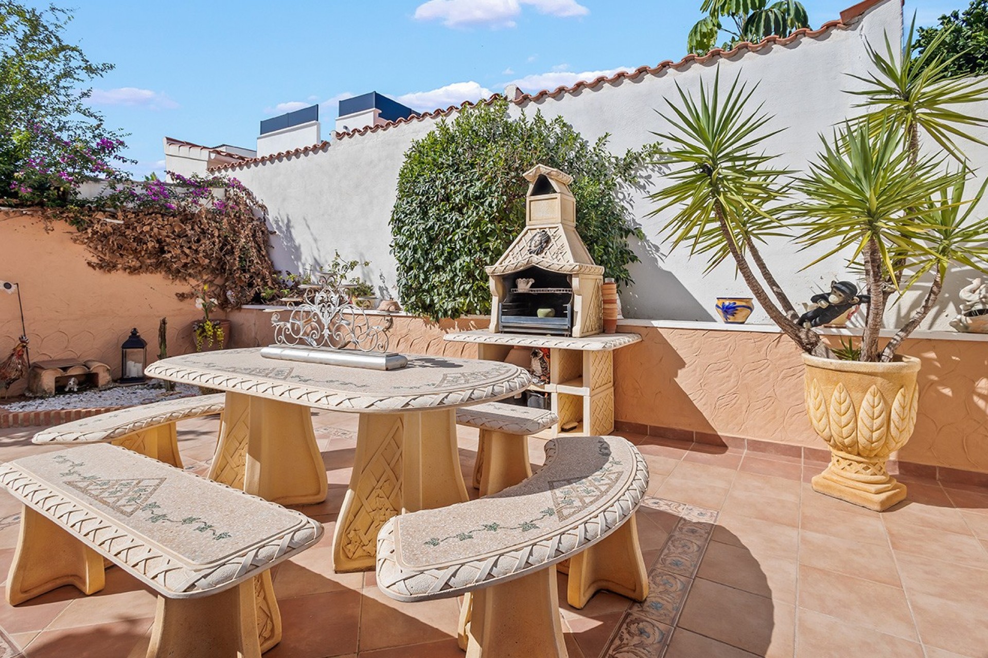 Outside, the home features a private garden with a seating area, built-in barbecue, and a large storage shed for bikes, tools, or beach gear. There is also private parking on the plot.