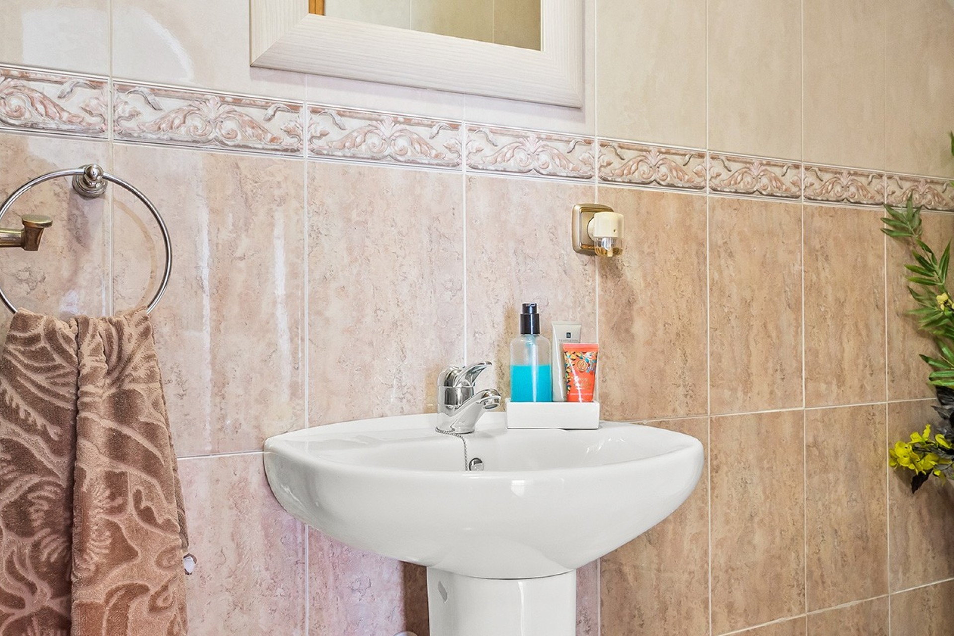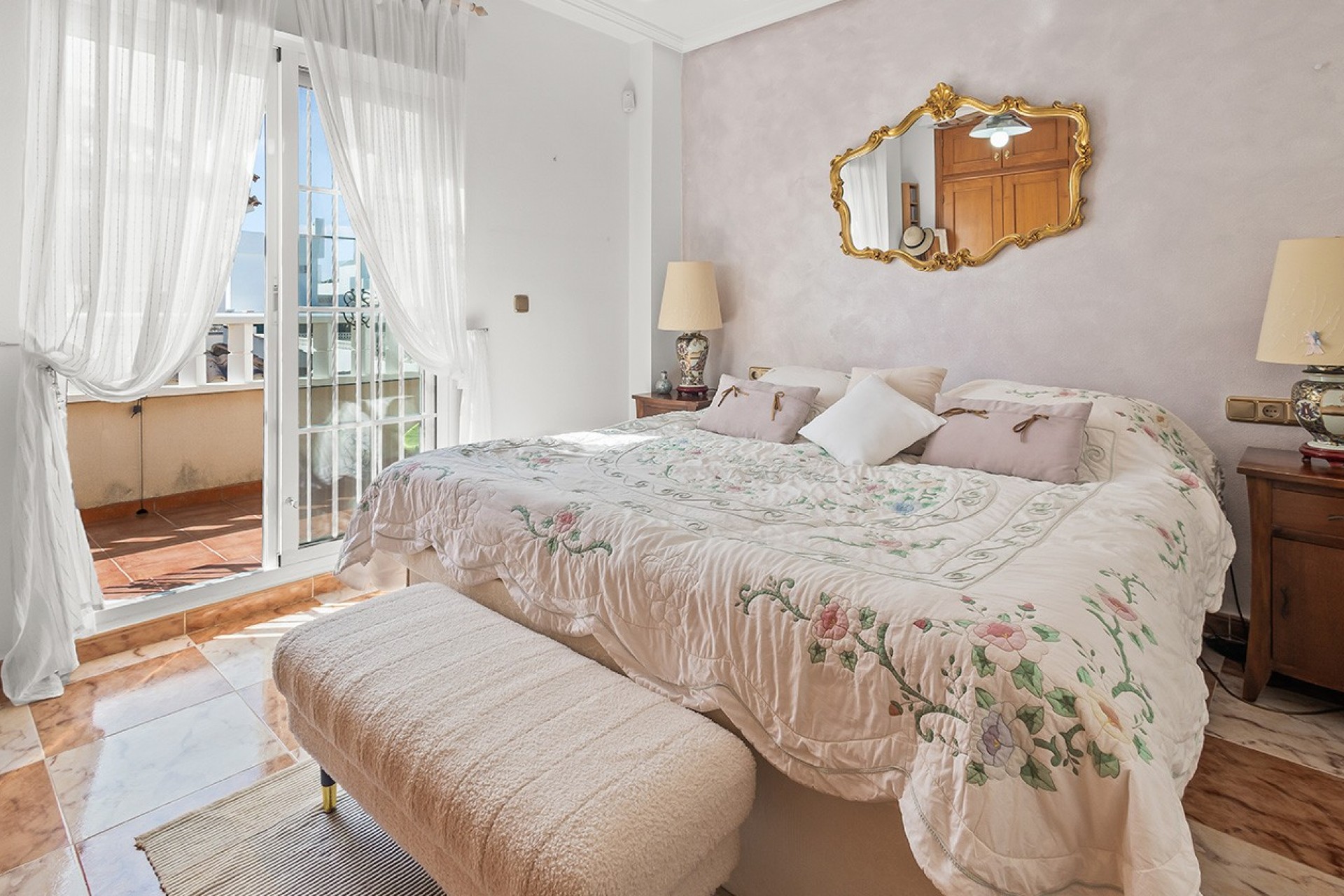 On the first floor, there are two spacious bedrooms. The main bedroom is large and south-facing, with access to a private terrace. From here, you can reach the private solarium with beautiful distant sea views—a peaceful spot to relax and enjoy the sunshine.