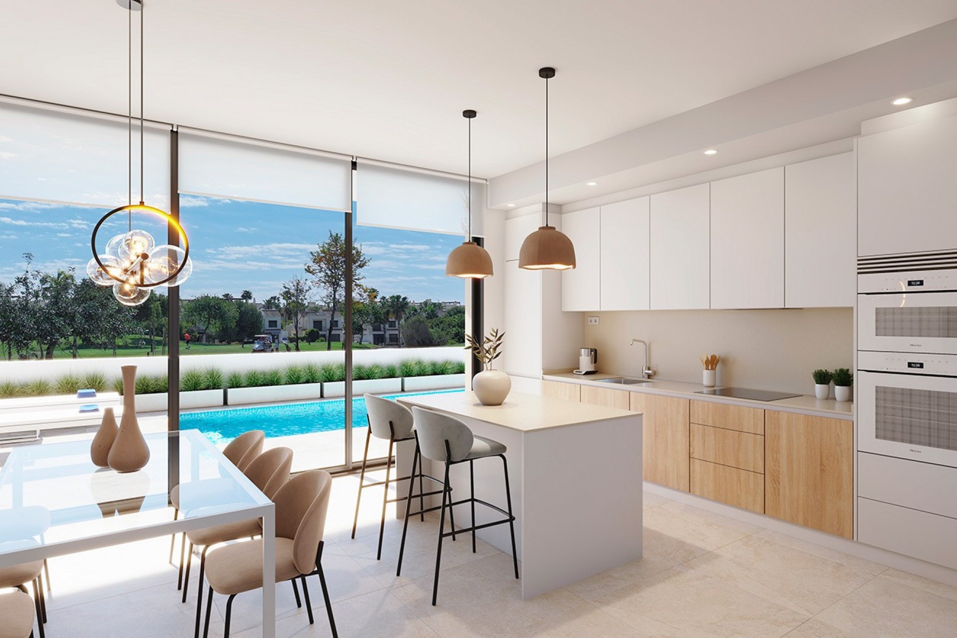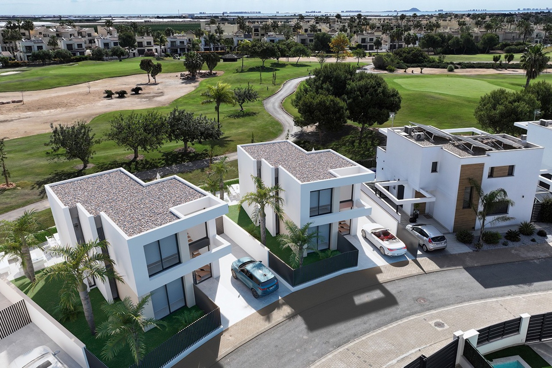 Costa Blanca Eiendom presents these exclusive newly built detached villas located on the front line of the prestigious Roda Golf Resort, in San Javier, one of the most sought-after areas of the Mar Menor. These modern homes have been designed to offer comfort, style and an exceptional quality of life, surrounded by nature and with open views of the golf course.