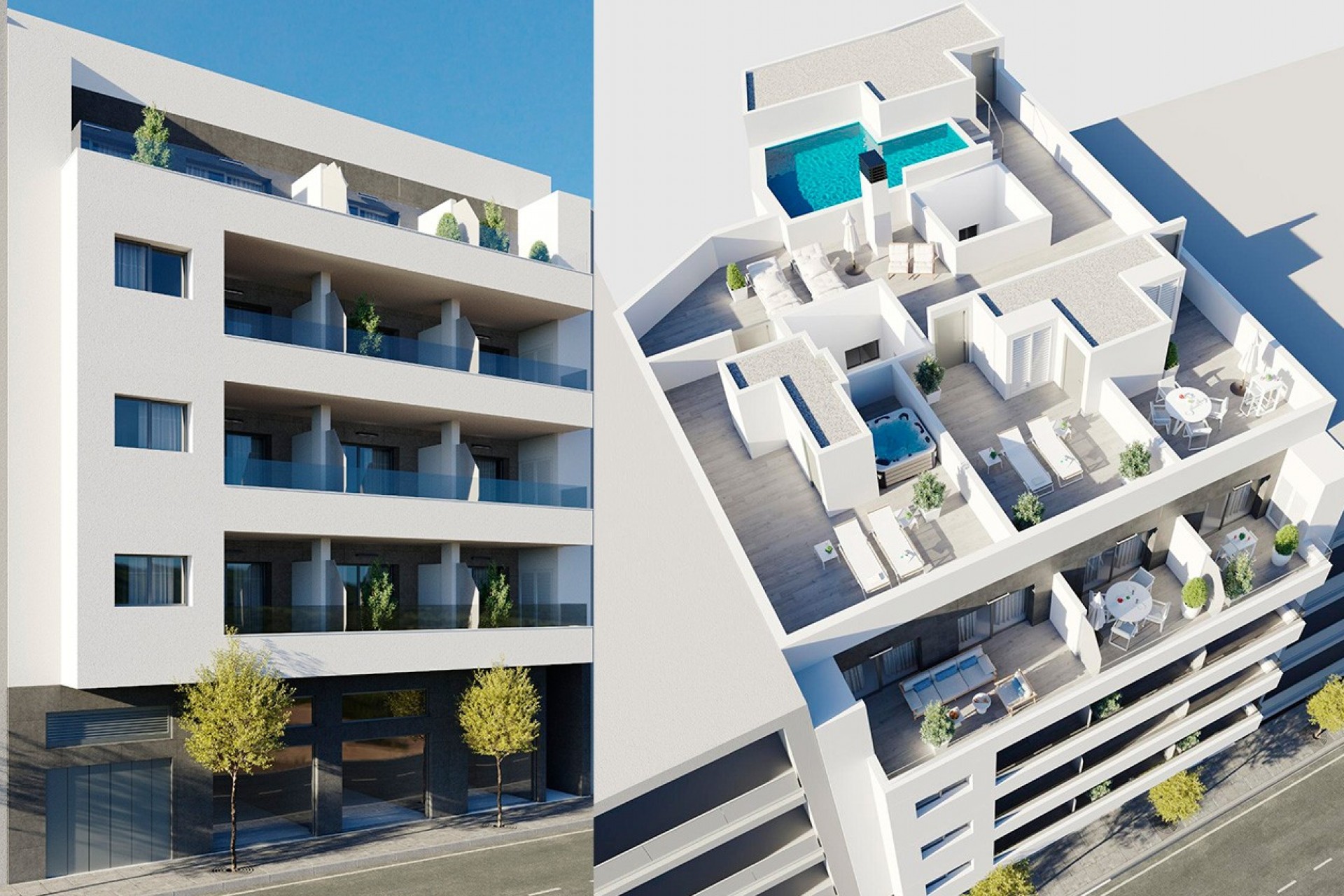 Costa Blanca Eiendom presents an exclusive new-build development of apartments and penthouses located in the centre of Torrevieja, just 400 metres from Playa del Cura and 150 metres from the seafront promenade. Its privileged location makes it ideal for those looking to live or invest in the heart of the city, with all essential services within walking distance, including supermarkets, shops, restaurants, cafés and public transport, in one of the most sought-after areas.