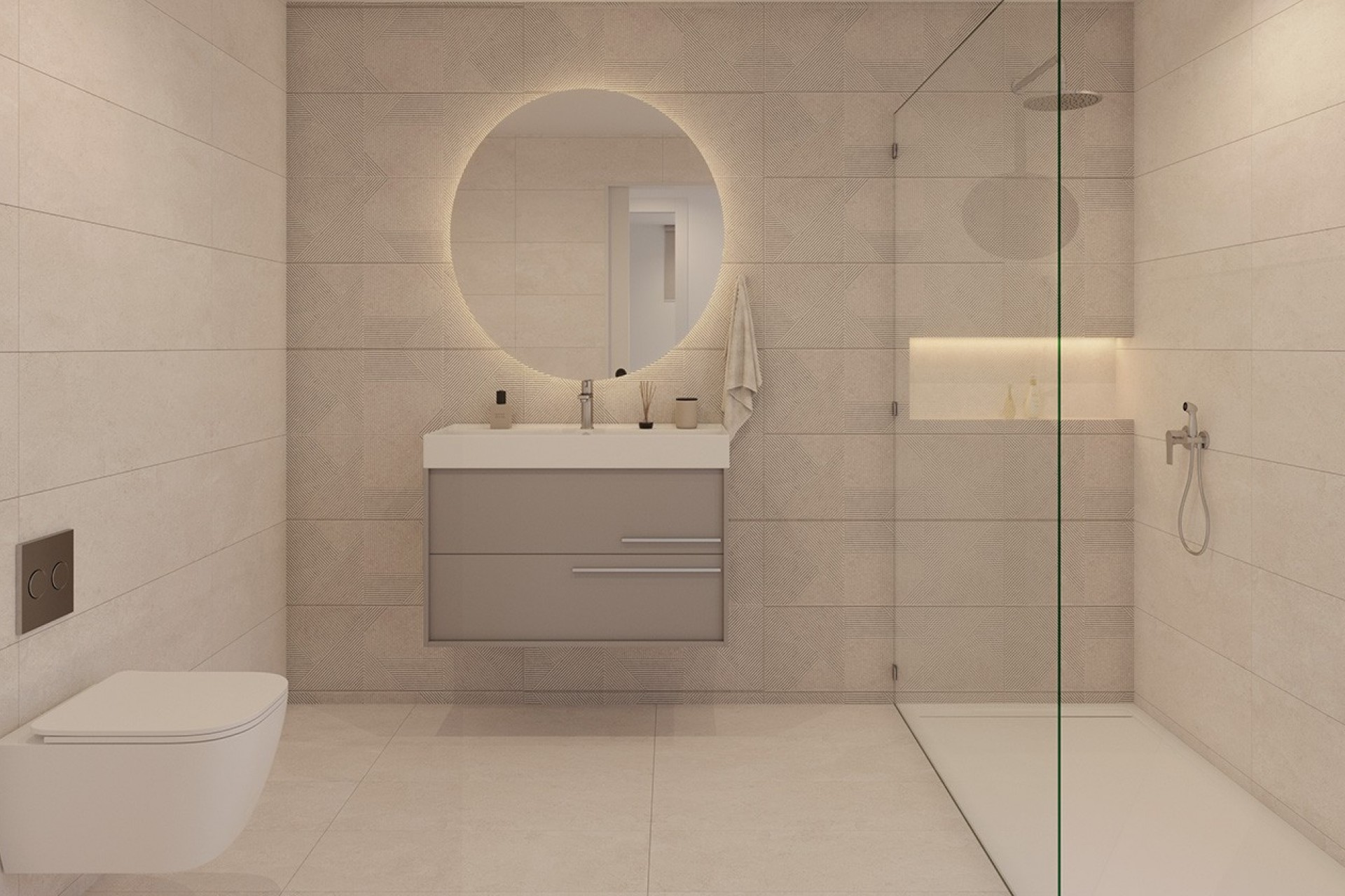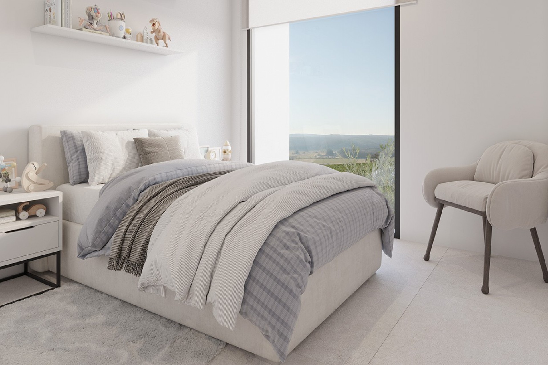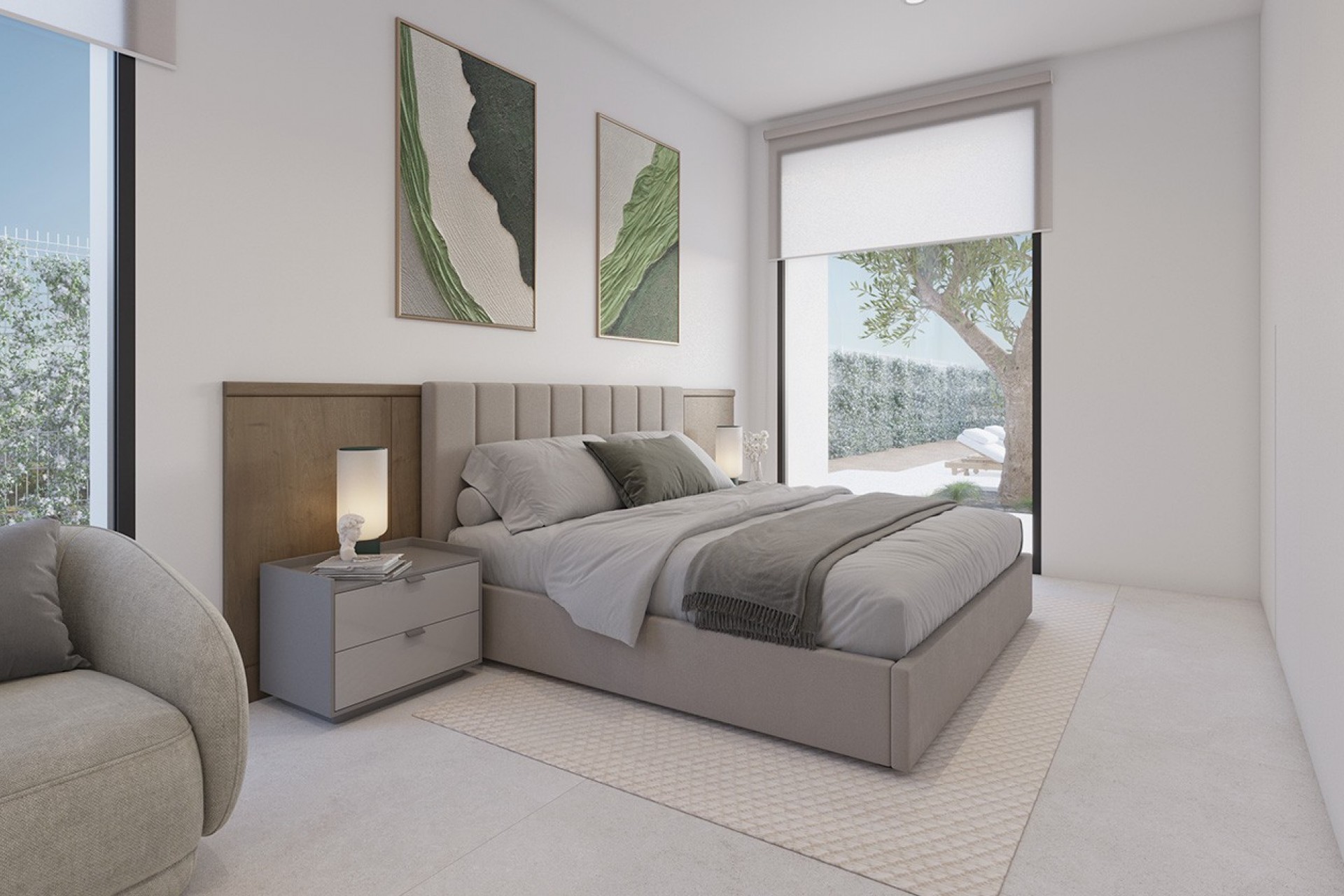 Externally, the villas offer a private garden with an individual swimming pool, perfect for enjoying the Mediterranean climate. On the first floor, a spacious terrace offers open views of the golf course and surrounding mountains, providing ample light and a pleasant sense of spaciousness.