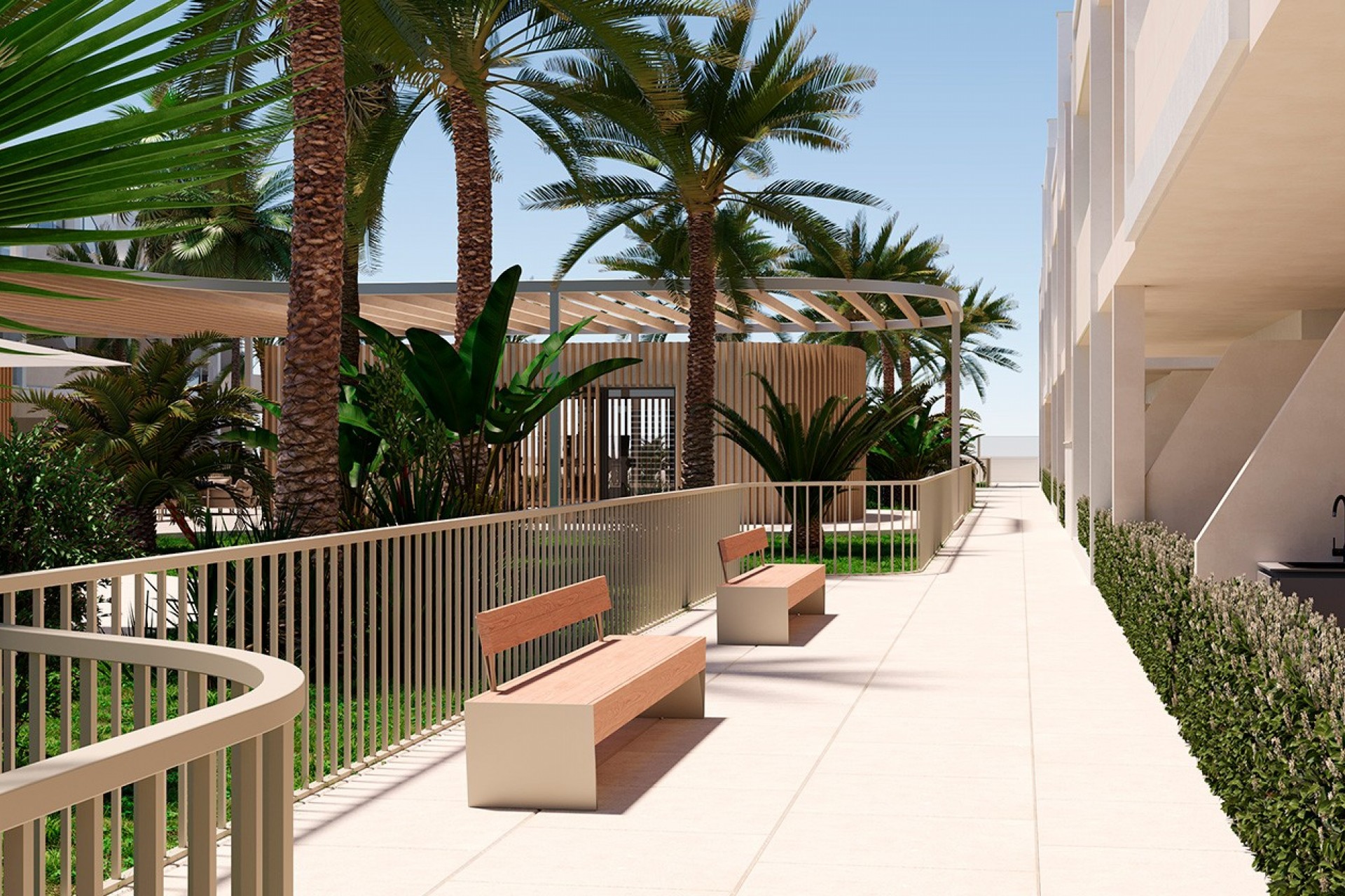 All properties feature private outdoor spaces to enjoy the Mediterranean climate. Ground-floor apartments have private gardens, first-floor units offer spacious terraces, and top-floor apartments include both a terrace and a private rooftop solarium, all equipped with a summer kitchen to make the most of outdoor living all year round. Each property also includes an outdoor parking space and a private storage room in the basement for added convenience.