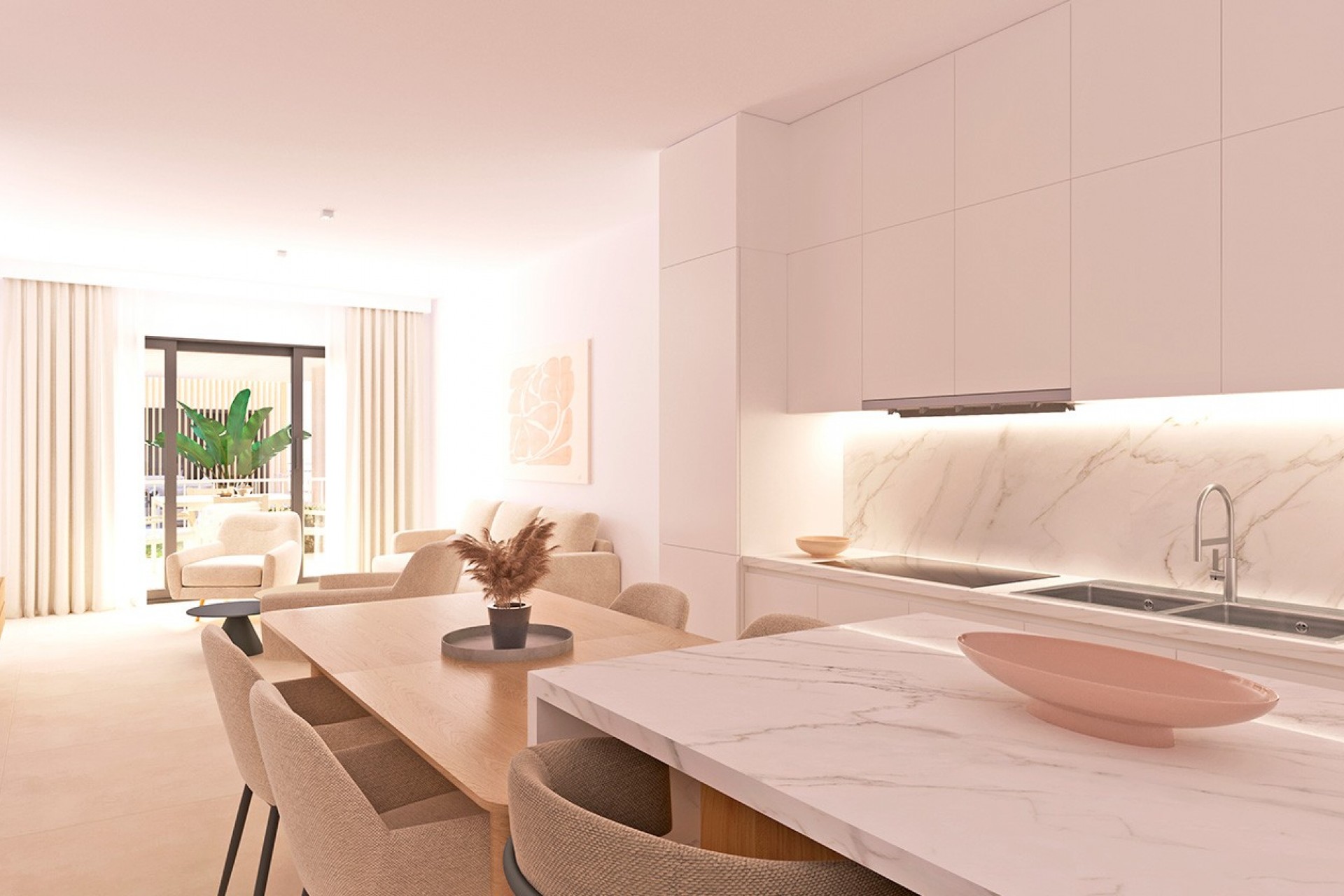 The apartments are delivered with a fully equipped kitchen including appliances, fully fitted bathrooms with furniture, mirrors, lighting, and shower screens, pre-installation for ducted air conditioning, and an aerothermal system for hot water. All of this ensures comfort, quality, and efficiency throughout the year.