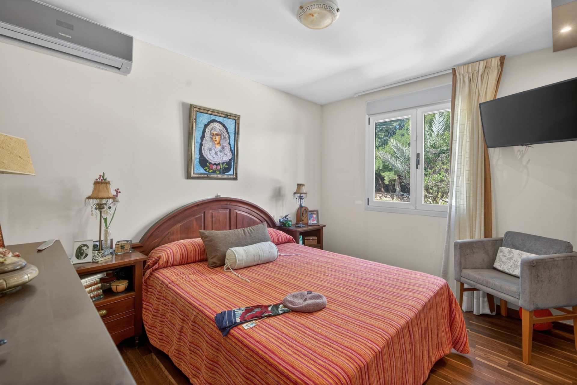 Located in the picturesque and peaceful area of Valverde, on the outskirts of the coastal town of Santa Pola and with easy access to Elche, this detached and generously sized villa sits on a beautifully maintained plot of more than 6,000 m². Surrounded by lush gardens, palm trees and vegetation, the property also features an independent guest house and private parking area.