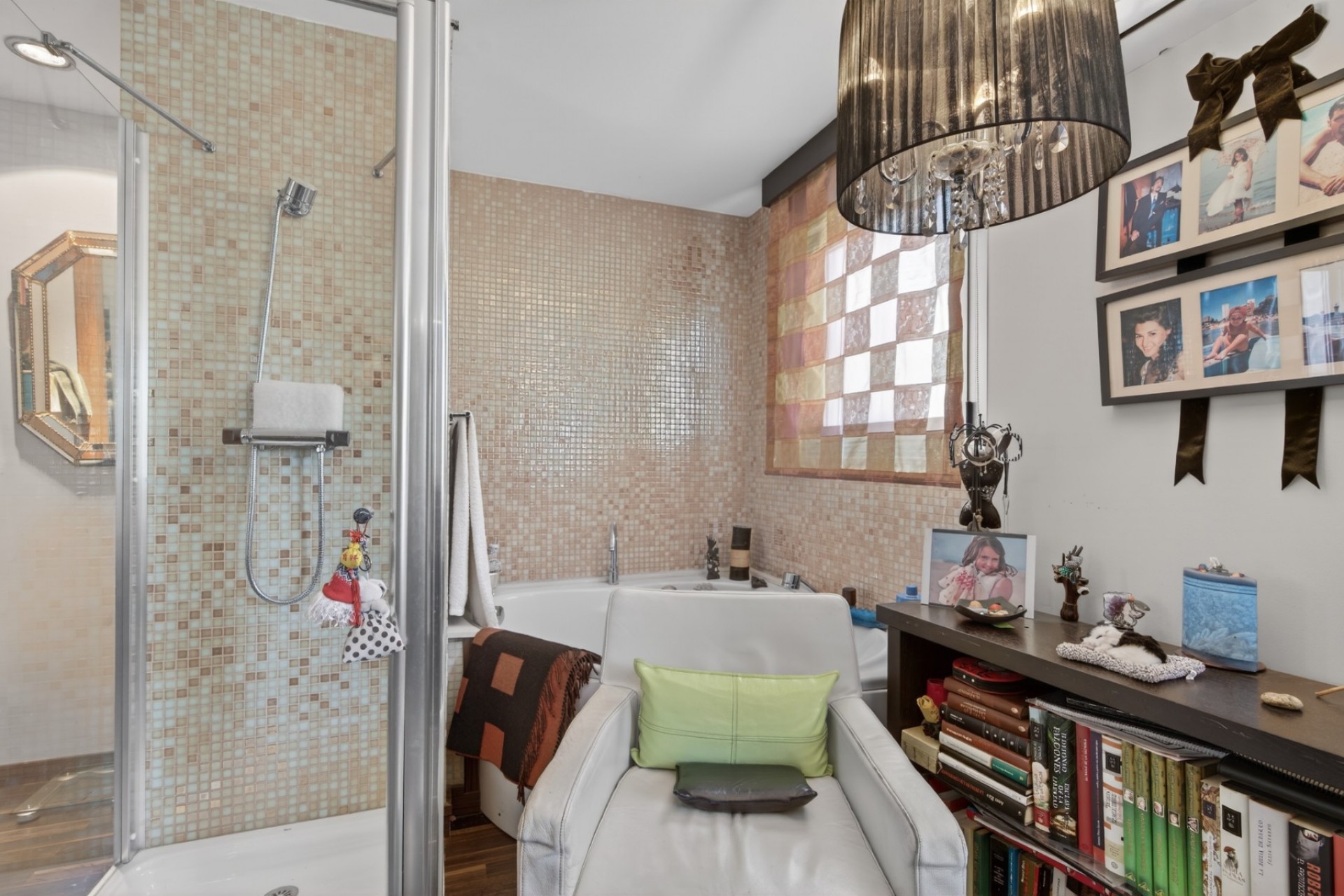 Open bathroom with bathtub
