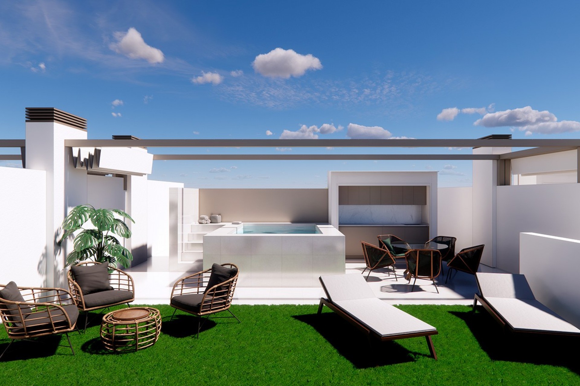The project offers two types of homes to suit different lifestyles. Ground-floor bungalows feature a large private terrace and their own swimming pool, creating the perfect space to relax outdoors, enjoy the sunshine, and dine outside with complete privacy. The top-floor bungalows include a private rooftop solarium, an ideal space for sunbathing, creating a chill-out area, or enjoying outdoor evenings. There is also the option to add a private pool or jacuzzi on the solarium, creating a personal oasis to enjoy the Mediterranean climate.