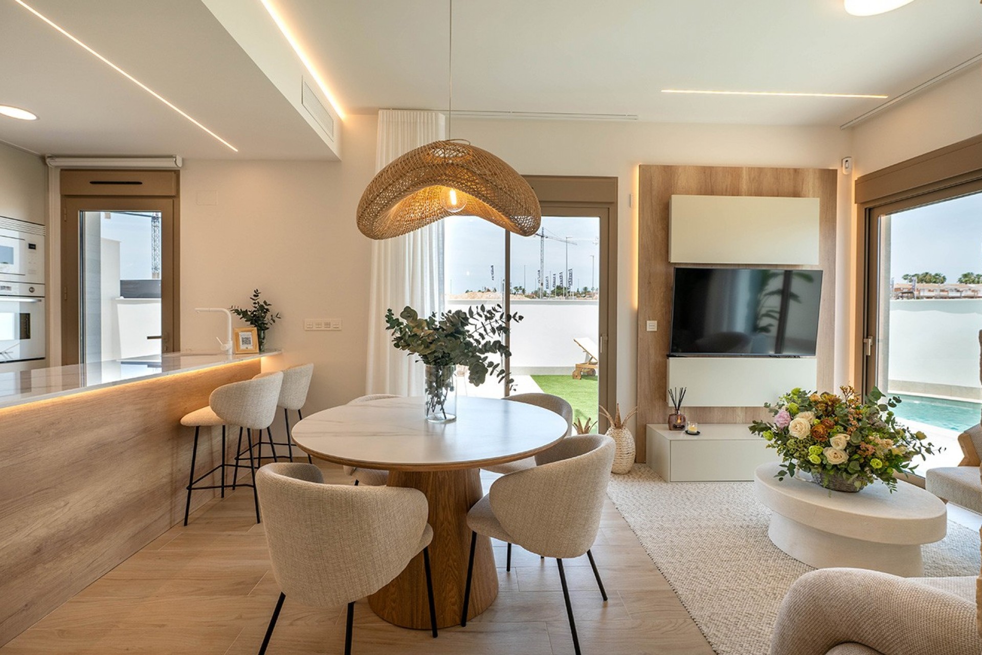 The outdoor spaces have been designed to make the most of the Mediterranean climate all year round. Each home features a private garden and a private swimming pool, providing the perfect environment to relax or enjoy outdoor moments. In addition, the spacious terraces and private solarium offer extra areas for sunbathing, hosting outdoor meals, or enjoying the open views of the surroundings.