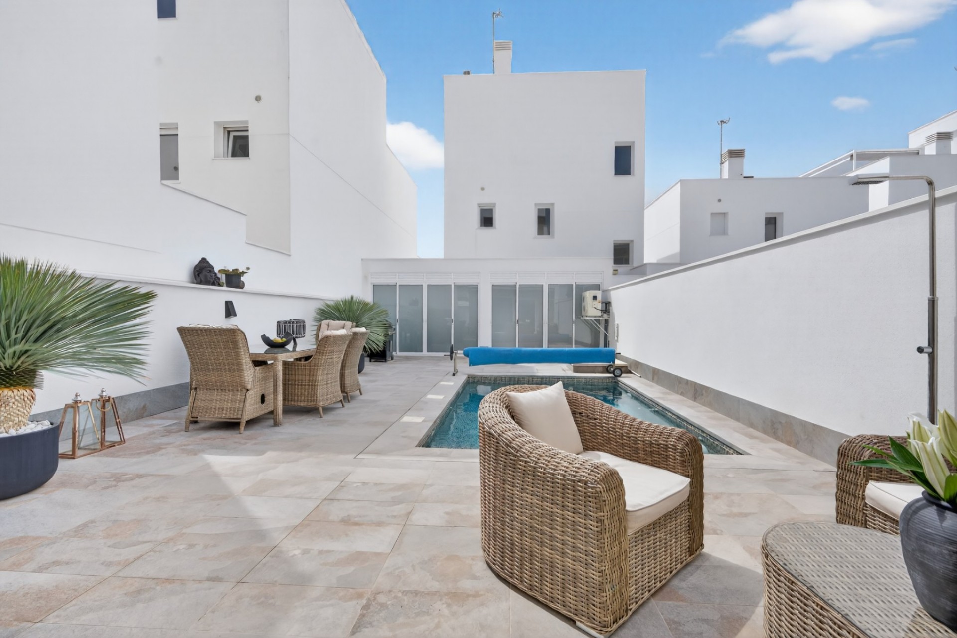 The third floor appears as a private zone and gives the feeling of a separate apartment. Here you will find a very spacious master bedroom with its own bathroom, large integrated wardrobes, and access to two private rooftop terraces, one on each side of the home. Both terraces are spacious and offer excellent sun conditions throughout the day, providing an extra sense of luxury and privacy.